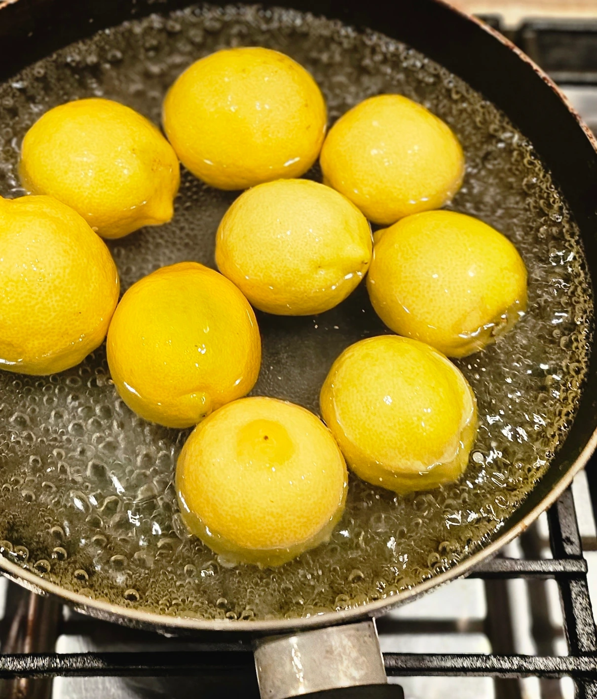 마지막으로 끓는 물에 레몬을 넣고 15초가량 데쳐주면 된다. 15초 후 옆에 미리 준비한 찬물에 담가주면 된다. 그리고 흐르는 물에 2번 깨끗이 씻어주면 된다. 이 과정이 마무리되고 난 후 체에 밭쳐서 물기를 제거한 후 물기를 키친타월로 닦아준다.