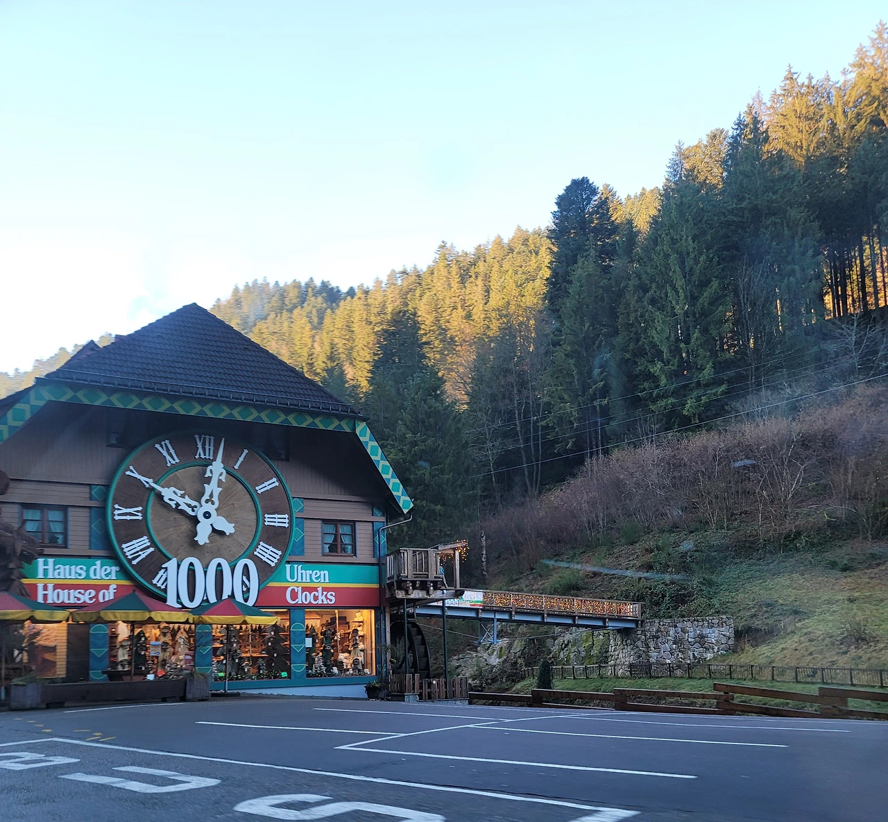 우리는 차를 타고 슈바르츠발트에 안전하게 도착을 했다. 슈바르츠발트(Schwarzwald)는 말 그대로 검은 숲을 의미하는 블랙 포레스트이다. 1만 1400㎢에 이르는 산악지대이다. 세계에서 가장 아름다운 숲 중 한 곳으로 알려진 있는 이곳은 독일 남서부 바덴뷔르템베르크 주에 자리했으며 뻐꾸기시계의 고향이기도 하다. 그러다 보니 뻐꾸기시계를 파는 가게들이 많이 있었고 가게마다 1,000년이라고 쓰여있다. 독일은 어디를 가도 긴 역사를 갖고 있는 가게들이 참 많다.