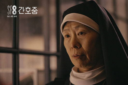SF 장르를 기반으로 한 이야기를 마주하게 되면 기대와 걱정이 동시에 발생한다. 전자의 경우는 미래라는 상황에서 어떤 설득력 있고 흥미로운 이야기를 보여줄지에 대한 기대일 것이고, 후자의 경우는 그간 보아온 같은 장르 속에서 몰입을 방해하는 설득력 없는 요소들에 대한 걱정이다. 그리고 그게 한국 영화라면 기대보다는 걱정이 조금 더 앞서게 되는 것도 사실이다. 특히 일종의 프로젝트로써 시작한 이 <간호중>과 같은 설정의 작품들을 보면 일반 상업영화보다 비용적인 부분에서 부족한 것이 사실이기에 애써 미래의 모습을 보여주려 시도를 하다, 자칫 언급했던 것처럼 몰입을 방해하게 된다. 아닌 게 아니라, 이 작품 속 미래의 병원이라는 공간에서 대부분의 관객이 아파트로 인식할 수밖에 없을 병원 복도의 모습이 바로 그 요소이다. 몇몇 영화와 드라마에서 보았던 그 공간이기에 더욱 그렇다.