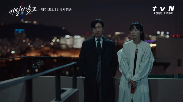 마지막으로 언급하고 싶은 장면은 황시목과 한여진이 만나는 장면이다. 황시목은 정보를 얻기 위해 그녀를 찾았고, 한여진은 그에게서 정보를 감춰야 한다. 각자 가진 정보량의 차이는 있지만 그 차이가 크지 않고, 지난 시즌과 이어지는 두 사람의 관계와 함께 이 장면 역시 긴장감을 흥미롭게 이어간다. 또한 이때 황시목의 대사로 재등장하는 ‘통제선’은 새 시즌을 위한 단순한 장치가 아닌, 안개 속 풍경을 점점 마주하게 되는 두 사람의 책임감을 상징적으로 대변하며 서로의 정보 교류가 필수적으로 이어질 수밖에 없다는 것을 설득해낸다. 덕분에 ‘감사하다’는 말을 그녀에게 받은 커피를 들어 보이며 대신하는 황시목의 모습은, 검경의 수사권을 놓고 쉬지 않고 논쟁하는 다른 이들과의 차이를 보여주며 어떤 방향이 맞는 것인가에 대한 질문을 우리에게 담담히 던지는 것처럼도 보인다.