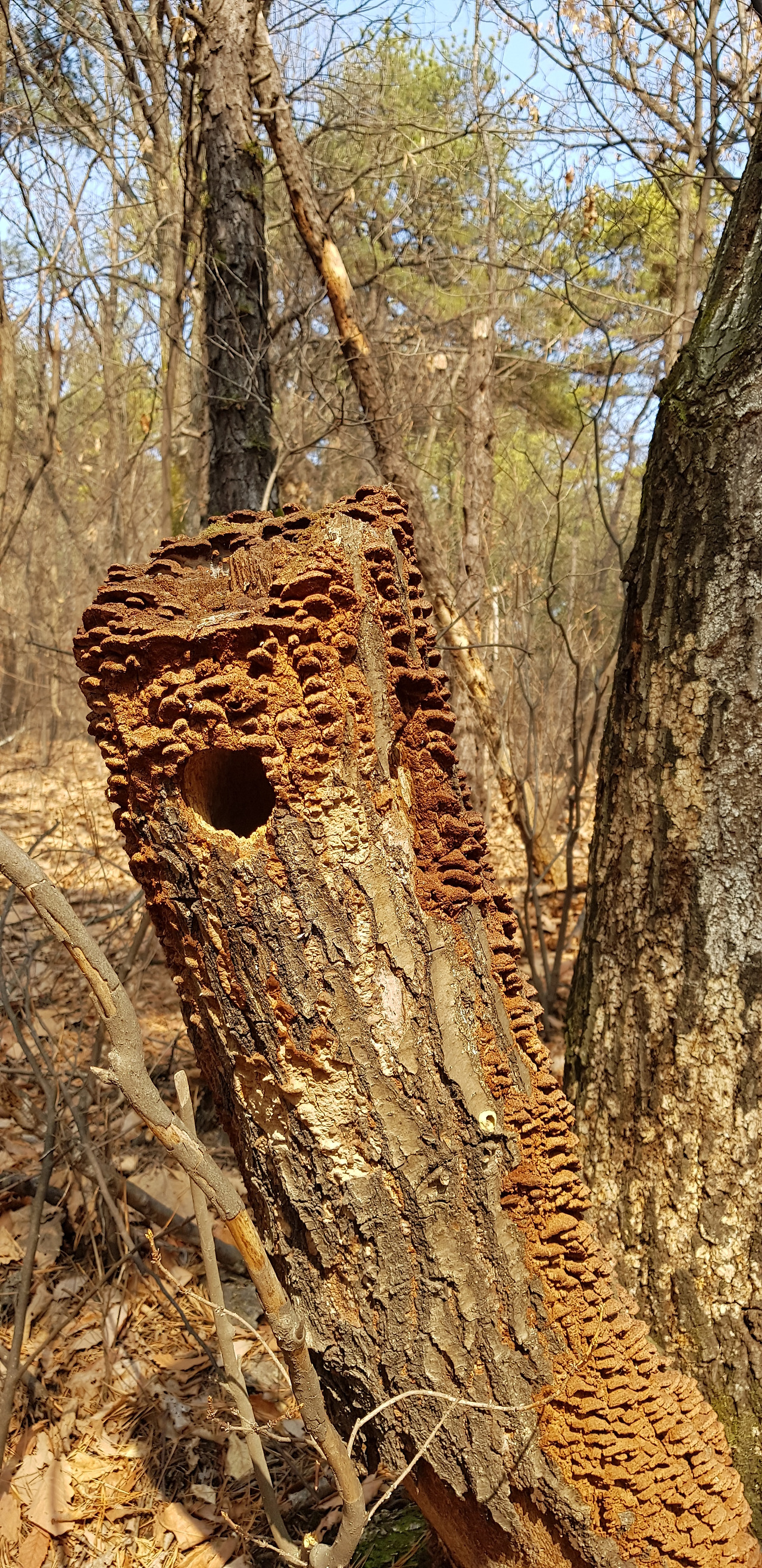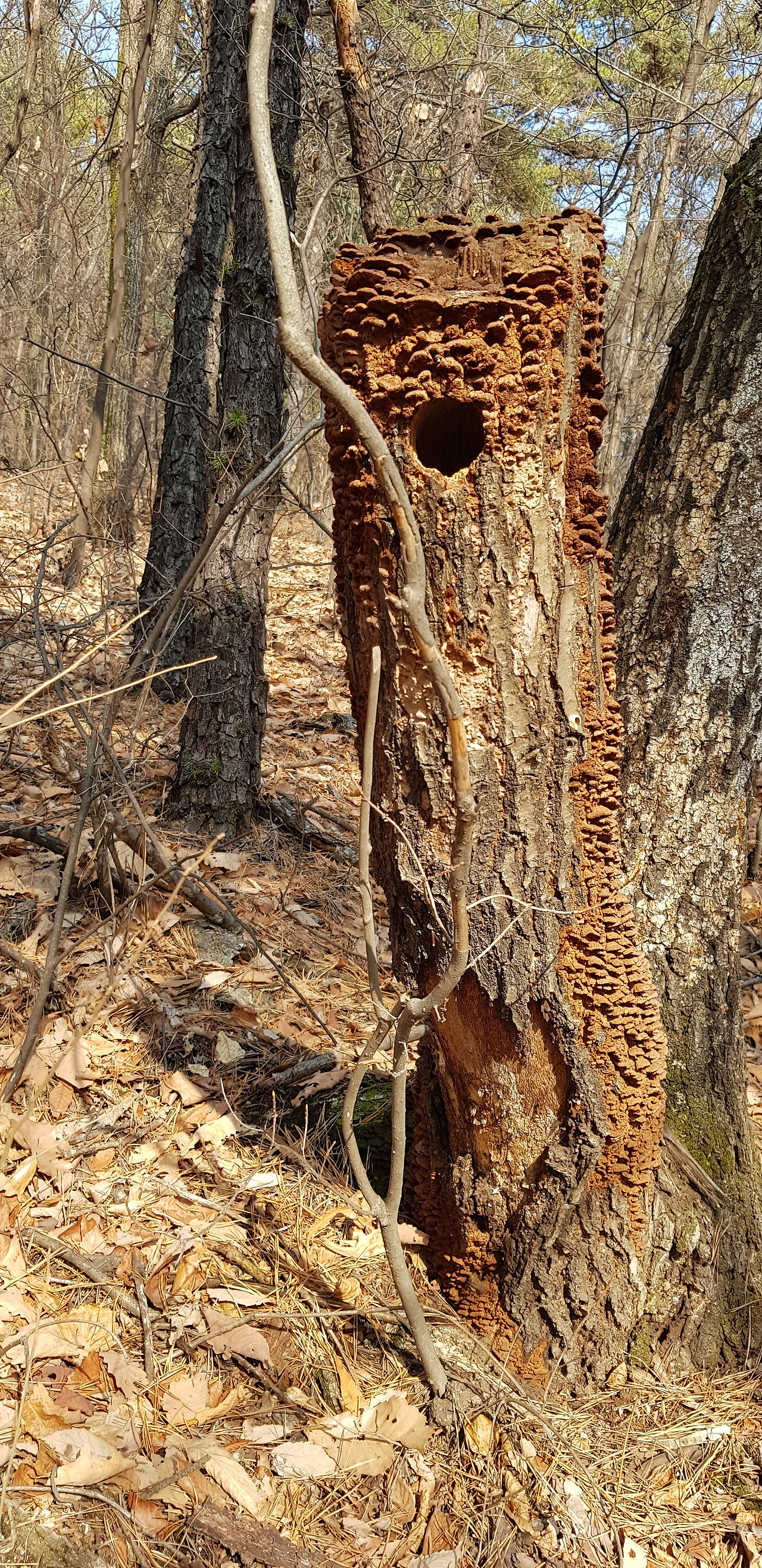 장승이 유쾌하게 웃는다. 장승이라고는 했지만, 허리가 잘린 나무다. 동강 난 몸통에 산새가 둥지를 트느라 구멍을 냈는지, 딱따구리가 벌레를 파먹기 위해 구멍을 냈는지, 버섯 핀 옷을 입은 나무가 마치 허허 웃는 사람 얼굴 같다. 나무는 잘려도 영혼까지 웃나 보다.