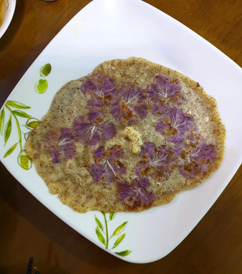 튀김가루에 들깻가루를 넣고 바삭하게 부쳤더니 맛이 좋았다. 부침개에 꽃잎과 꽃술이 그대로 살아 있어서인지 연분홍 그리움을 박제해서 먹은 느낌이 들었다.