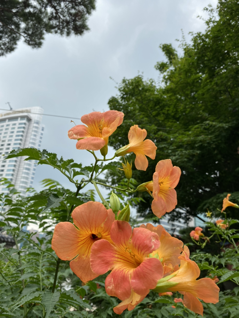 나는 시를 쓰거나 기댈 곳을 엉금엉금 찾아간다. 사찰로 연꽃을 보러 갔다. 주차장에서 미륵대불 쪽으로 가는 좁은 계단을 오르다가 하늘을 향해 뻗어가는 활짝 핀 주황 무더기를 보았다. 단아하고 고운 자태. 7월의 열기를 뿜 뿜 내뿜고 있었다. 빗속에서도 생동감 있게 다가오는 일편단심, 그 꽃이 사랑스럽게 느껴졌다.