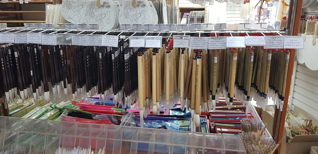 수묵화가 부드럽고 단정해서 좋다면 민화는 화려하고 기원 바람의 의미가 느껴져 좋아한다. 필방을 둘러보다 그녀가 붓과 민화책과 커다란 부채 하나를 사서 나온다. 채색을 할 수 있는 화선지가 붙어 있는 부채다. 집에 가서 부채에 색을 입히고 물 번지는 것을 상상하는 것만으로도 그녀의 마음이 시원해지는 것 같다.