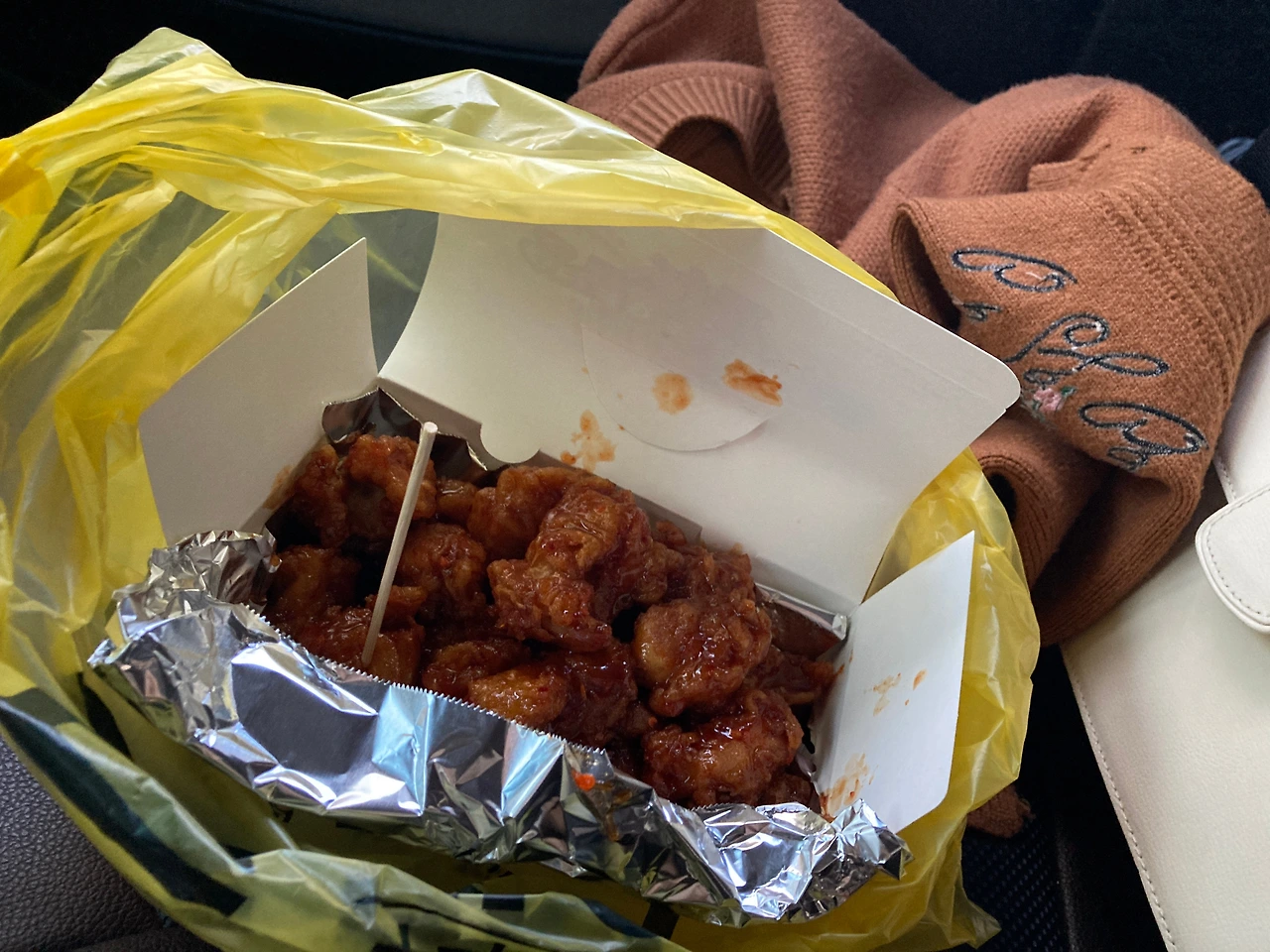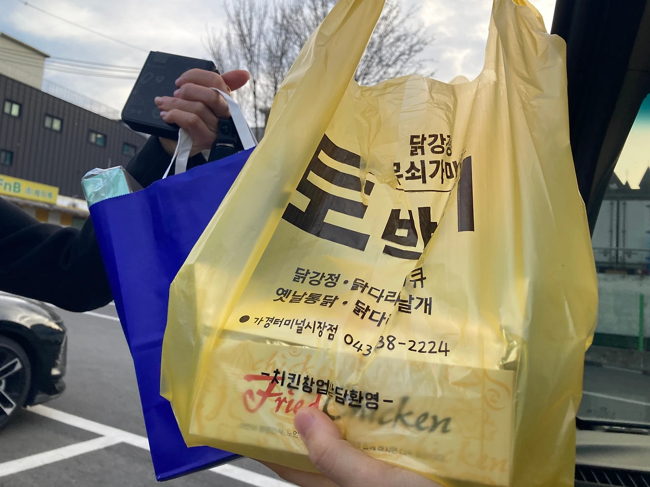 응원의 마음으로 챙겨 온 빵이었는데, 닭강정으로 되돌려 받았다.