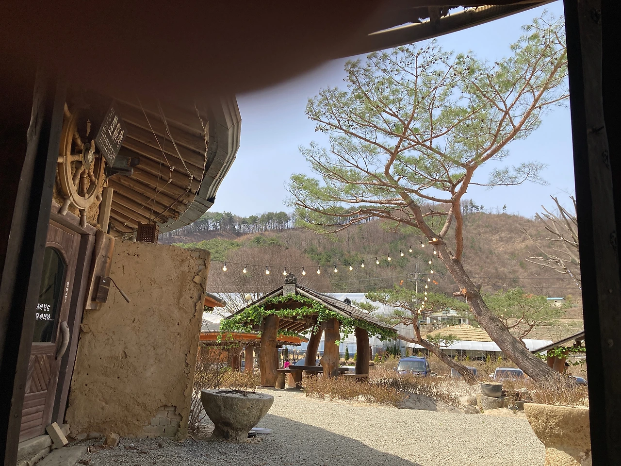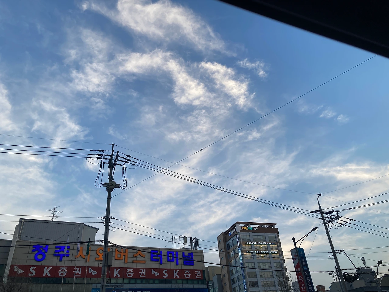 식당을 나가니 미세먼지가 걷히고 조금씩 파아란 하늘을 보여주고 있었다.