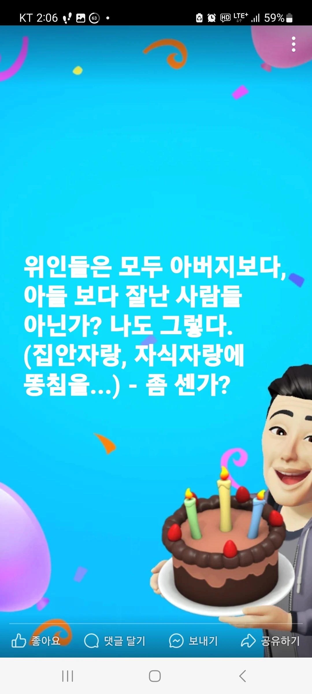 초점은 위인이 아니라, 부모자식 자랑하는 이는 잘해야 2등이라는... (3대에서 1등은 위인의 필요조건이지 충분조건이 아니다. 그러니 "3대 1등이 라고 위인은 아니지"라고 토다는 분은 중학교 수학책을 다시 보시라.) 나는 내 일만하지. 애비나 자식에게 내가 해줄게 뭐있어? 조상자랑은 신분사회지향성을 드러내고, 친일종족주의 반일종족주의의 뿌리이지. 에리히 프롬이 말한 사촌간의 싸움이지.(프롬은 공산주의와 기독교의 상호혐오를 사촌간 싸움에 비유.)