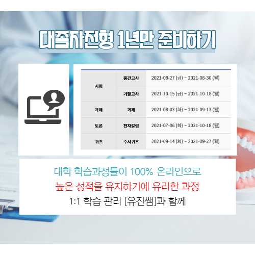 그렇기때문에 날이 갈수록 학점은행제를 통해서 좋은 성적을 유지해 전문대 보건계열로의 진학을 꿈꾸는 분들의 상담문의가 끊이질 않습니다. 오늘은 치위생과 진학을 하신 다른 학습자님의 후기를 통해서 마무리하겠습니다.