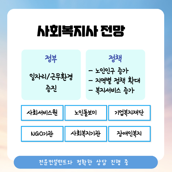 사회복지라는 분야는 점점 갈 수록 전망이 높아지고 있습니다.