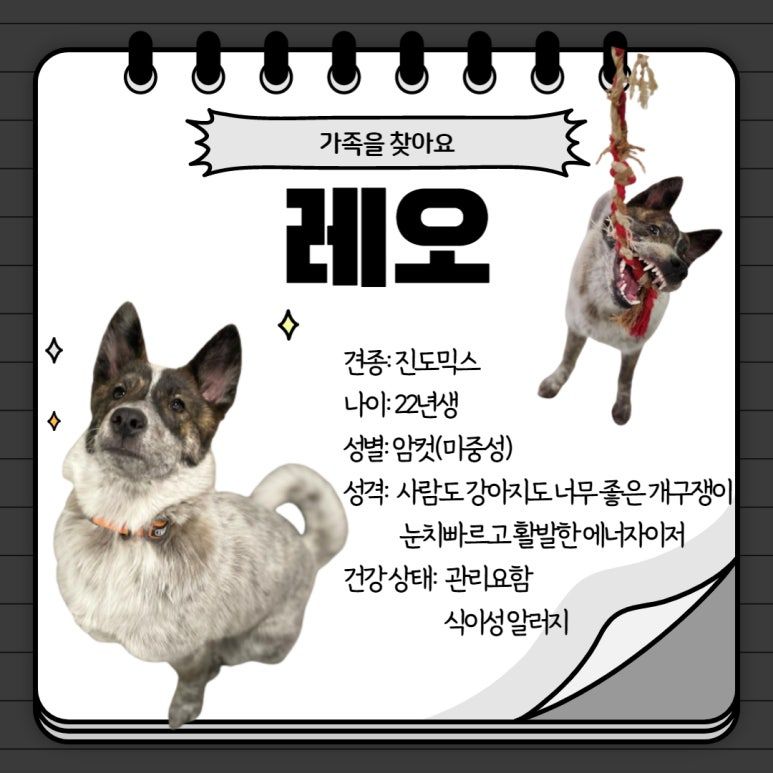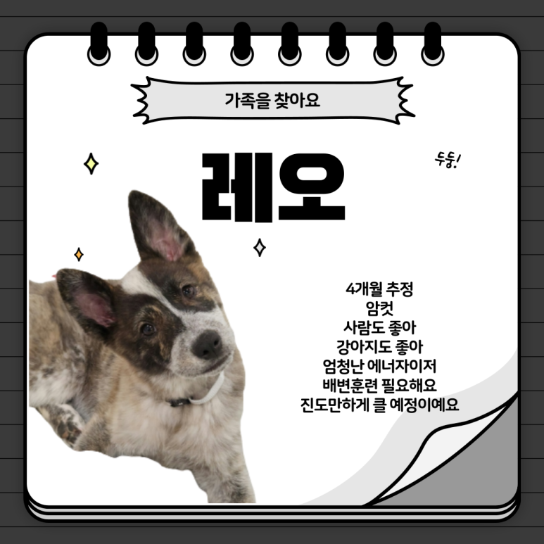 이번에 등장할 강아지는 레오예요.