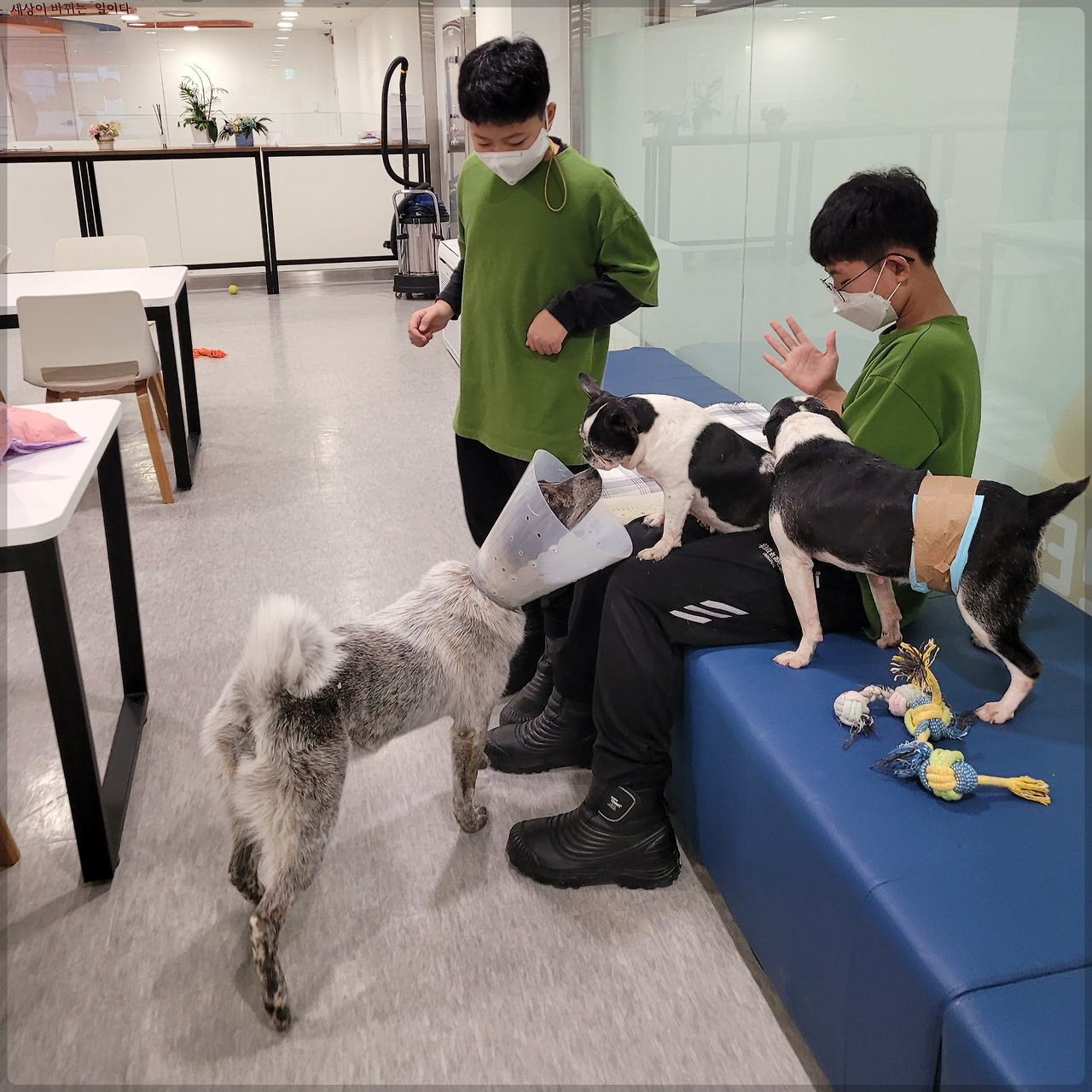 센터에서 소형견들과 지내는 레오니