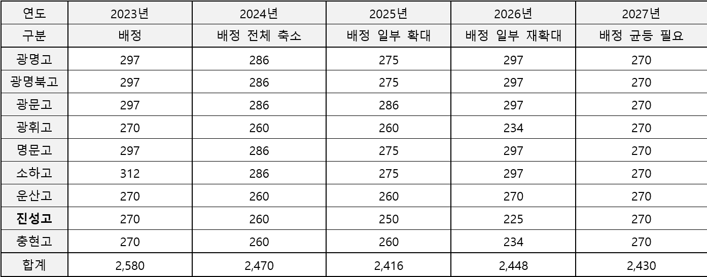 6. 광명시 9개 고교 정원 재조정 및 평준화 원칙 회복
