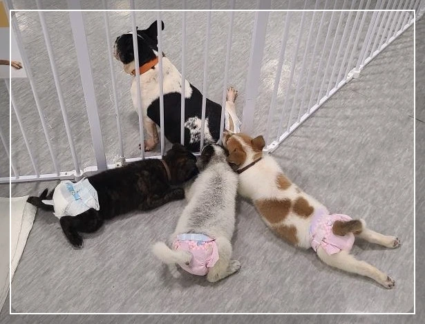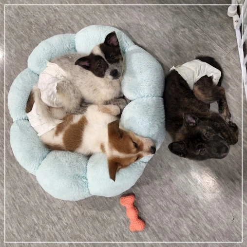 2022년 5월생인 듯한 세 마리의 강아지들.