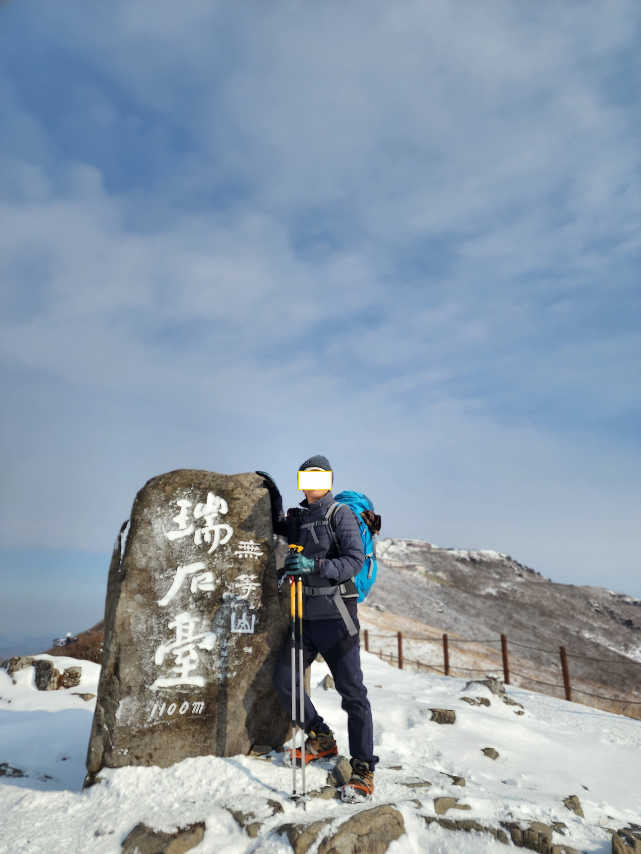 무등산 ‘서석대’라고 쓰인 정상석에 먼저 도착한 또 다른 젊은 남자가 눈을 집어 음각으로 새긴 검은 글씨를 흰 눈으로 메우고 있었다. 검은색 서석대는 새하얀 서석대로 변하고 있었다. 나는 글씨를 모두 하얗게 메울 때까지 기다렸다가 ‘재미있네요’ ‘사진 한 장 부탁할까요?”라고 건넸다. 남자는 내 스마트폰으로 연거푸 네 장을 찍어줬다. 나도 혼자 온 그 젊은 남자의 정상 등극을 사진으로 남겨줬다.