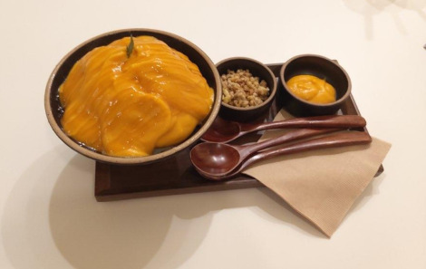 우리가 들어온 후 많은 사람들이 가게를 채우고 다시 비우길 반복했다. 우린 제일 먼저 들어와서 오랫동안 자리를 지켰다. 길게 앉은 김에 메뉴 하나를 더 시켰다. 노랑노랑한 색감으로 자꾸 눈길을 끌던 단호박 빙수! 비주얼부터 우리를 호들갑 떨게 만들더니 너무 맛있었다. 단호박 한 숟갈에 사르르 모든 마음이 녹는다. 내가 언제 우울했냐는 듯 마음이 밝아진다.