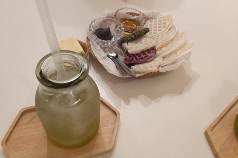 두툼한 빨대를 힘껏 빨아들이면 달달한 과육과 상큼한 탄산수가 입안을 가득 채운다. 톡톡 터지는 과일을 한껏 느끼면서 쫄깃한 와플을 찢었다. 이곳에서는 와플과 함께 메이플 시럽과 수제 흑임자 크림, 아이스크림을 함께 준다. 어떤 것을 곁들여 먹을지 고민하는 순간부터 행복함이 몰려온다. 달달한 아이스크림, 고소한 흑임자 크림, 행복해지는 메이플 시럽이 우울할 틈을 주지 않는다.