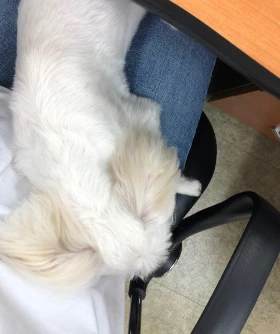 어디선가 토독토독 익숙한 소리가 들린 다했더니 회사 대표님이 키우는 강아지가 놀러 왔다. 콩이란 이름처럼 까만 코가 귀여운 몰티즈다. 내가 키우는 강아지와 같은 종이라 그런지 보기만 해도 애틋하고 반갑다. 작은 발로 사무실 이곳저곳을 돌아다니며 냄새를 맡는데 그 모습을 자꾸 눈으로 좇게 된다.