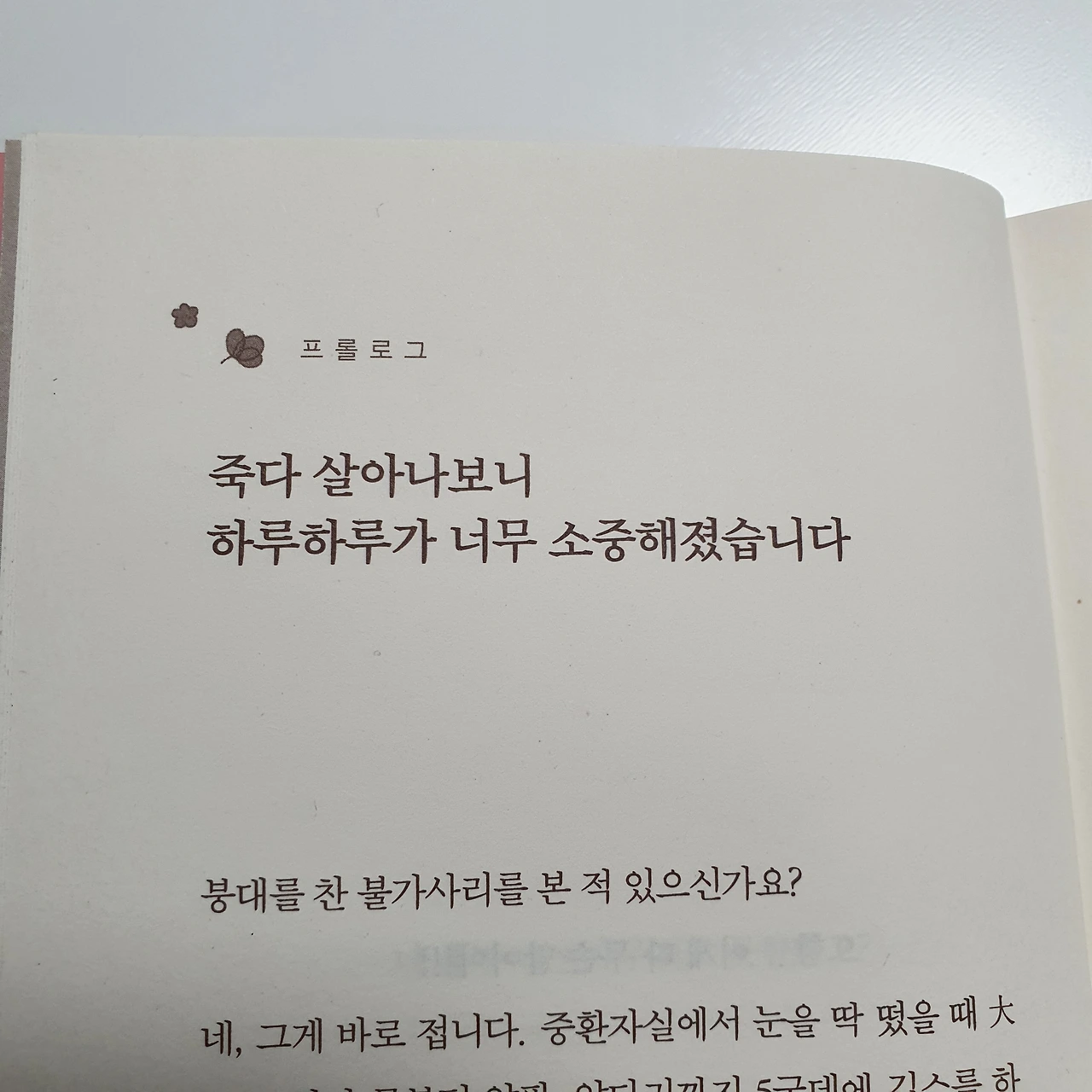 그리고 일상을 ‘나답게’ 만들어가기 시작한다. 내 몸 그대로를 사랑하며 '사이즈 차별 없는 패션쇼' 모델로 참가해 멋진 모습을 보여주고, '수의사'라는 새로운 직업을 꿈꾸며 도전을 하게 된다. 작가는 자신의 시도를 이렇게 표현했다."망설임 앞에서 용기 내 한 발자국 내딛는 것, 내가 원하는 것이 무엇인지 정확히 알고 조금씩 나를 바꿔나가는 것" 생사의 고비를 넘고 난 뒤, 삶의 방향이나 태도가 달라졌다고 말하는 사람들은 많다. 그들의 스토리는 언제나 관심을 끈다. 그러나 '슈퍼맨'같은 사람들의 이야기는 때로는 너무 완벽해서, 나와 너무 동떨어진 것처럼 느껴지기도 한다. 하지만 이 책만큼은 그렇지 않다. 살면서 병원에 길게 입원한 적도 없는 나지만 책을 읽다 보면 공감하고 빠져들게 된다. 그 고민과 생각들이 너무나 인간적이어서 더 매력적이다.