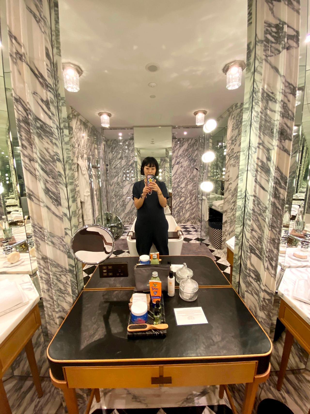 다분히 주관적인 생각인데, 이 호텔은 보석이나 핑크색 좋아하는 여성들이 선호하는 호텔인 듯하다. 나는 개인적으로 미니멀한 스타일을 좋아해서인지 그 유명한 화장실 - 마블패턴을 배경으로, 분장실의 화려한 전구들이 마구 켜져 있는 듯한 이곳이 참 어색했는데, 화려한 분위기를 좋아하는 고객들은 분명 열광할만한 인테리어였다. 그에 반해 룸 내부 인테리어는 모던한 느낌. 홍콩섬을 바라볼 수 있는 야외수영장은 굉장히 작은 사이즈라 생각보다 실망. 욕조 어매니티나 피트니스 시설은 기구들이 좋았음. 고객서비스는 기억날만한 정도는 아니고 그냥 무난했다.