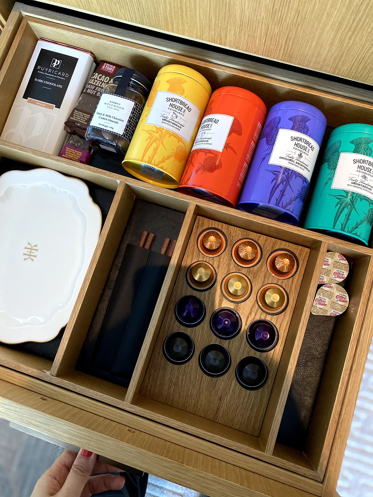 우측에 낮은 건물이 쇼핑몰 K11 Musea이고 좌측 높은 건물이 로즈우드 호텔이다. 오픈하기 전부터 세상 화려한 럭셔리 호텔이라고 해서 떠들썩했다. 여기 호텔도 입구 찾기가 참 애매한데, K11 musea 맞은편에 작은 입구에서 엘리베이터를 타고 1층으로 올라가면 그제야 호텔 로비로 향하는 입구가 나온다. 잘 모르겠으면 포트넘 앤 매이슨 옆 입구를 찾으면 좀 더 찾기 수월하다.