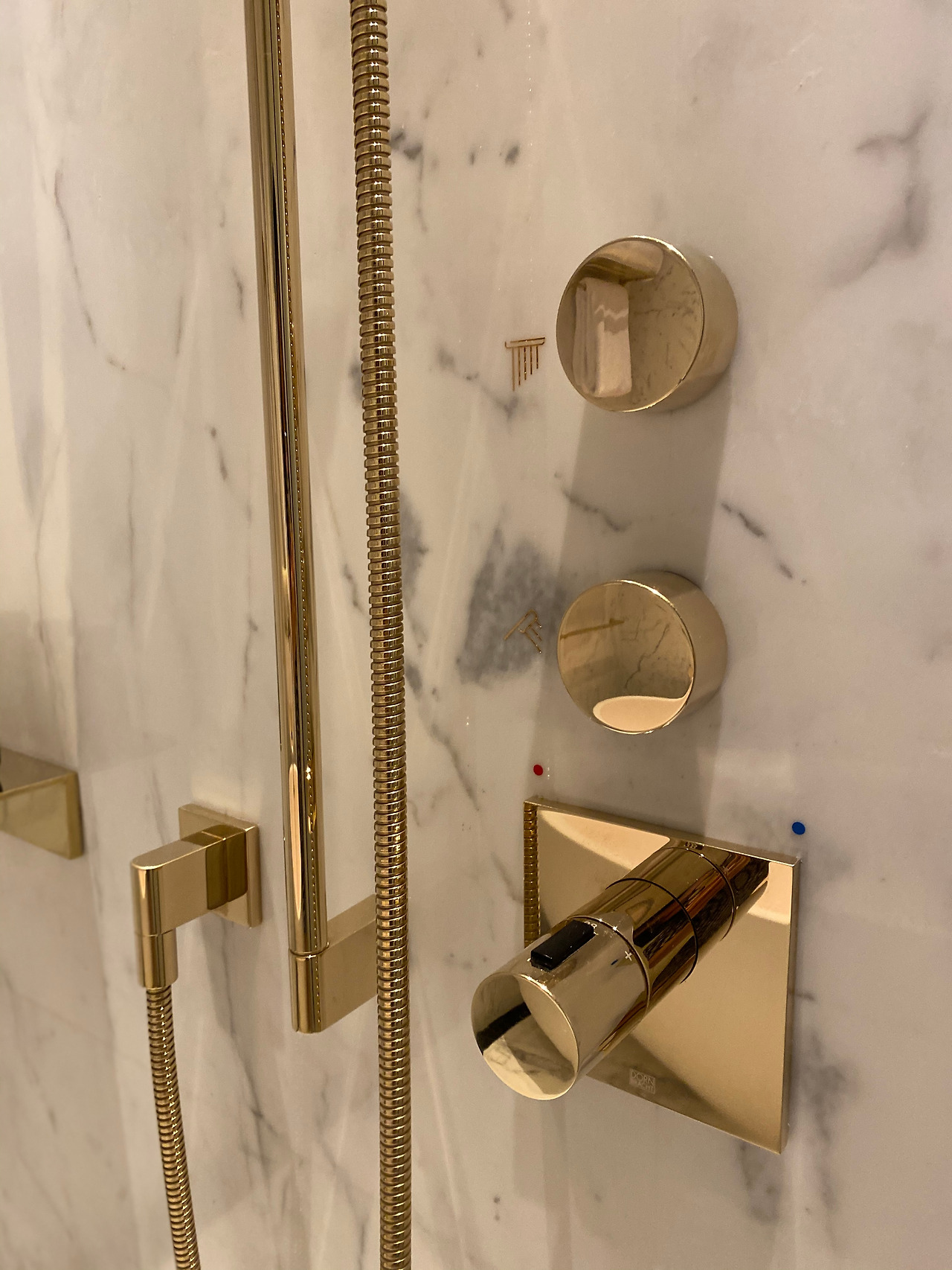 옛 건물은 풀 화이트였는데 금색띠와 블랙 대리석의 조화가 이루어지니, 럭셔리한 분위기로 거듭났다.