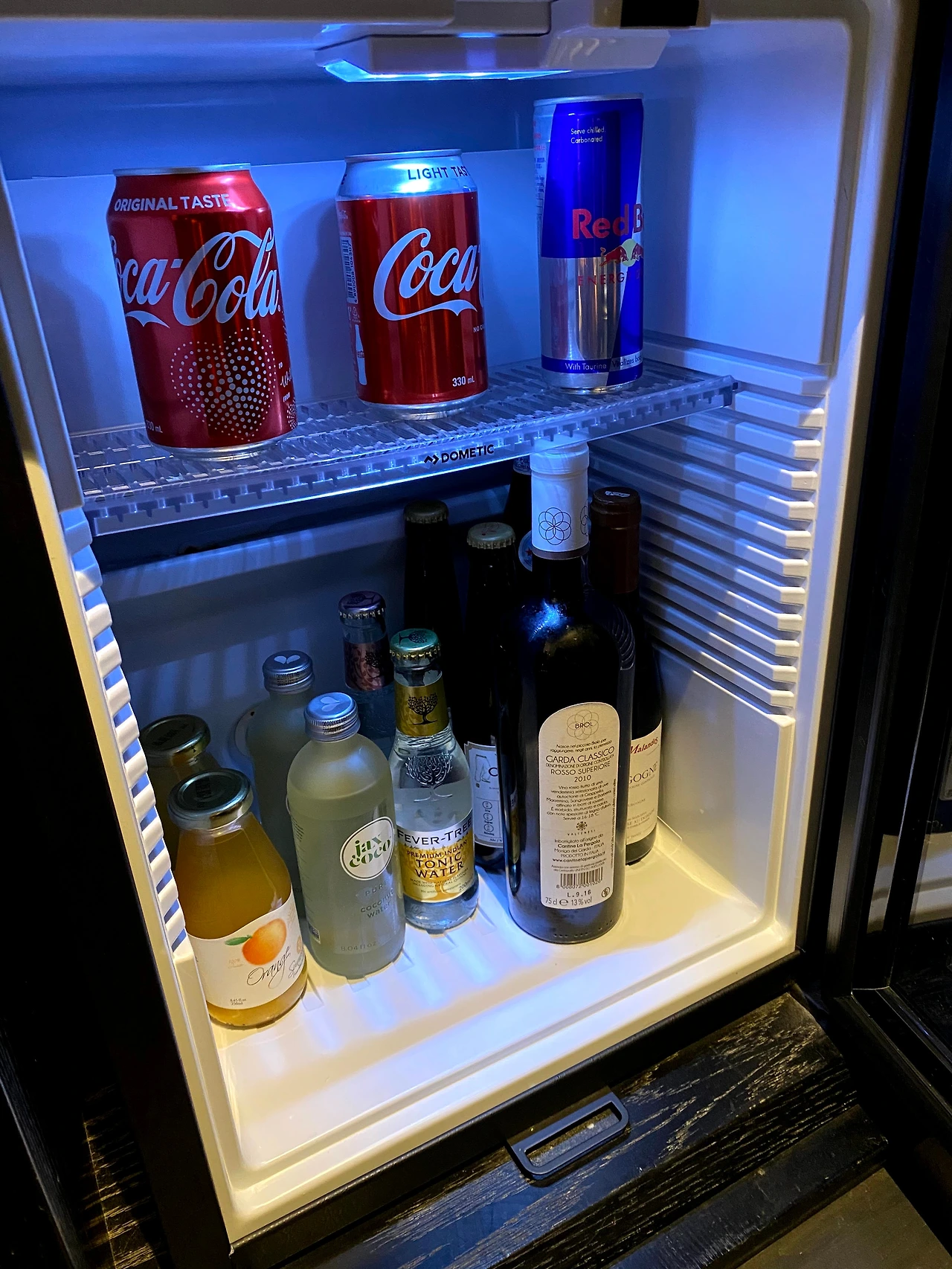 호텔옆에 아무것도 없어 보이지만, 사실 다리 건너서 센트럴 방향으로 좀 걷다 보면 슈퍼마켓이 있다. 스태프분한테 물어보면 친절하게 안내해 줌. 아무리 그래도 편의 시설 접근성이 약간 떨어지기 때문에 호텔 내 미니바가 꽉 차 있다. 아래 사진 참고