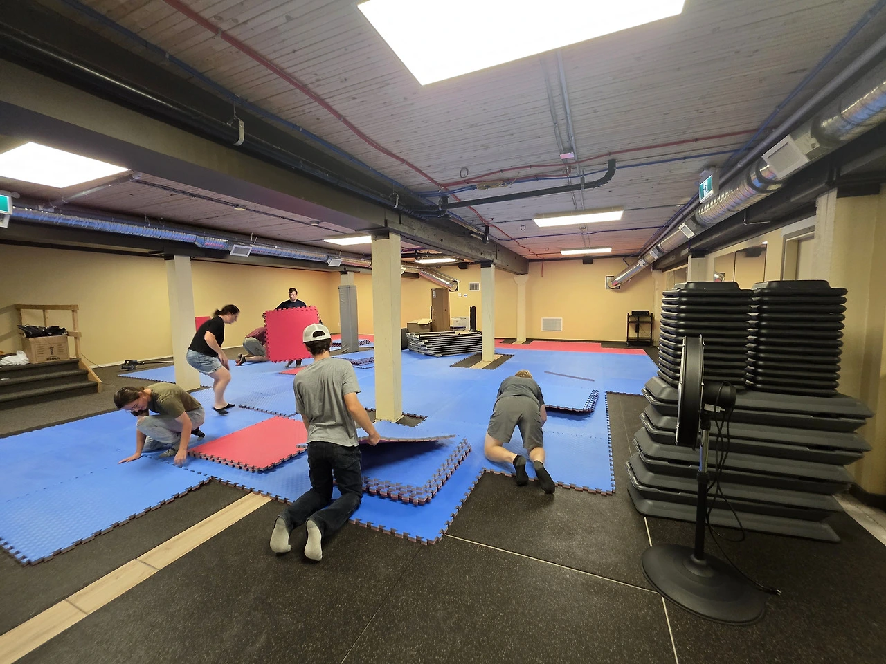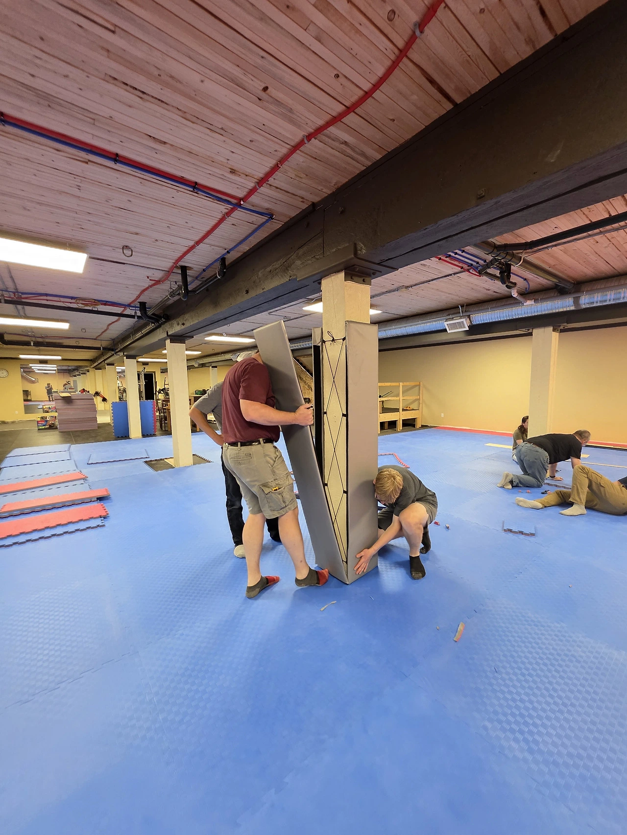 수업에 필요한 자료들을 정비하고, 새로 오픈할 도장 바닥과 매트를 손수 깔아야 했죠.