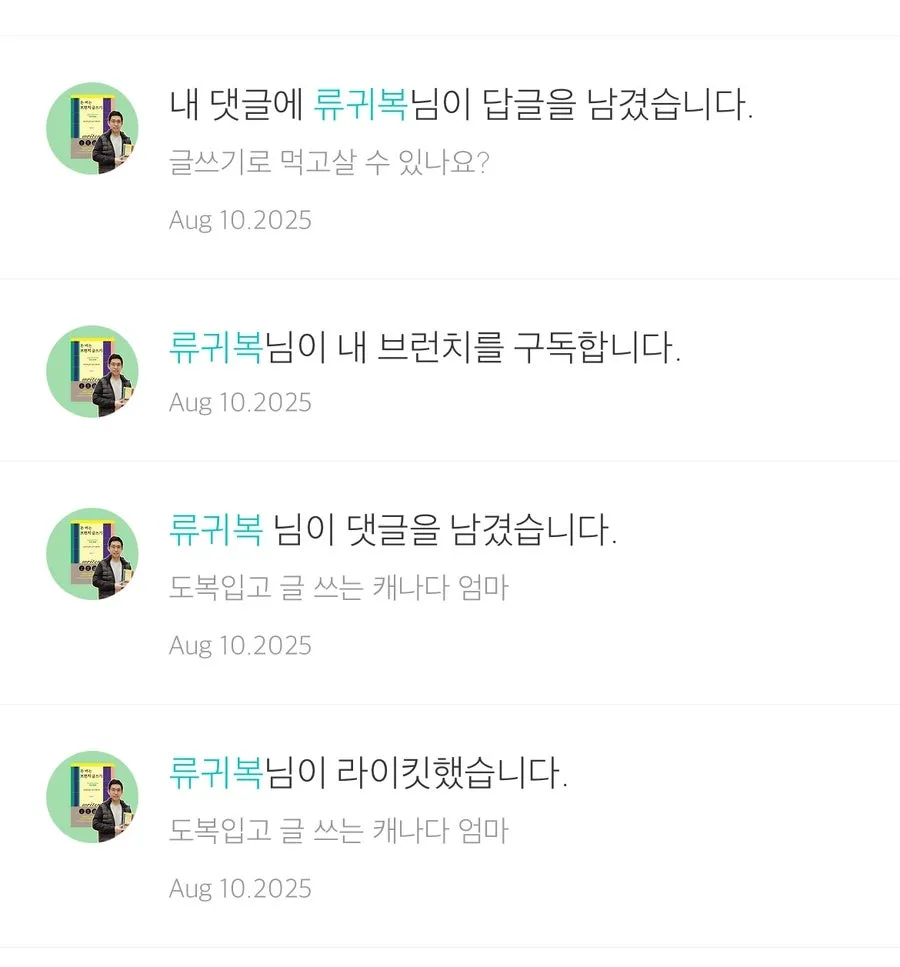 ‘류귀복 작가님이 구독한 브런치 작가’라는 생각에