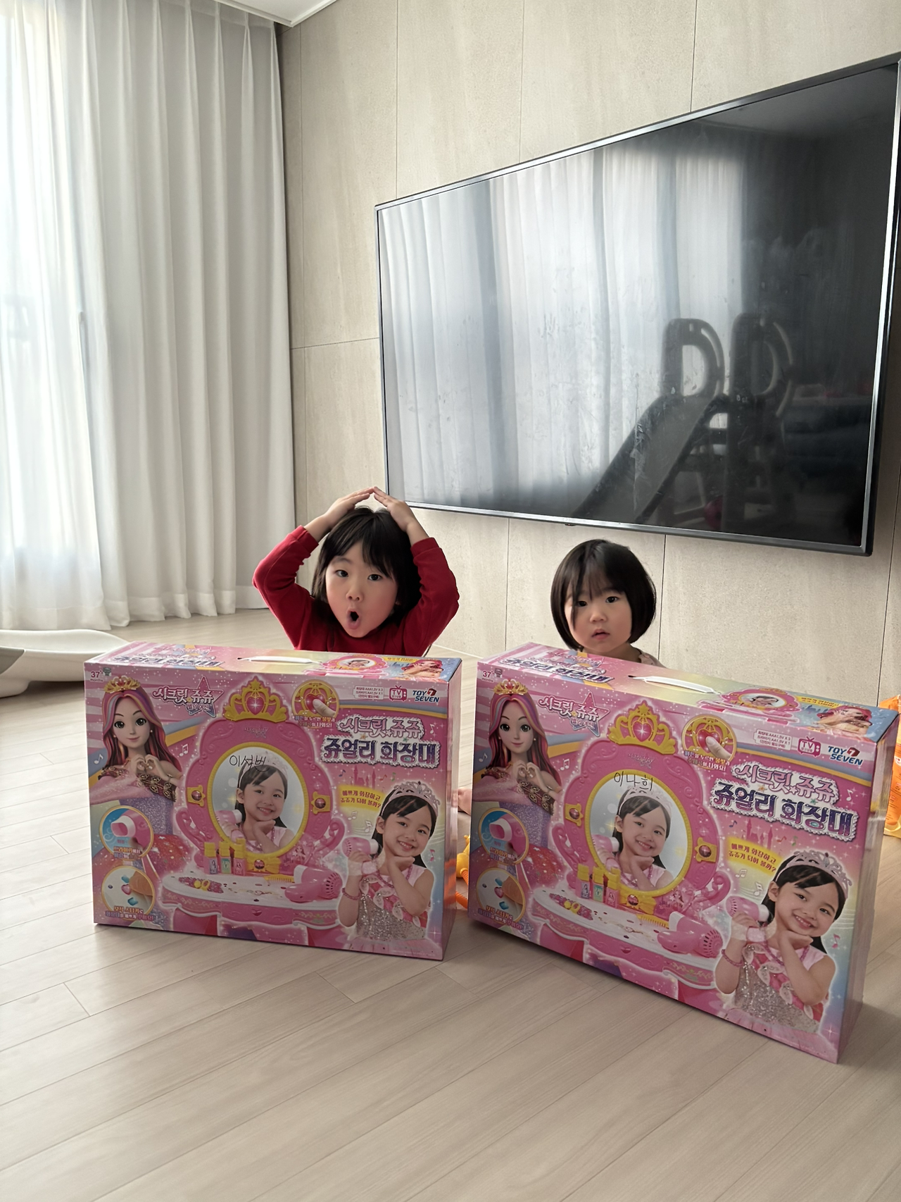 아빠 산타는 커다란 선물을 두 아이에게 건넸다. 똑같은 시크릿쥬쥬 화장대였다. 나는 아이들에게 물었다.