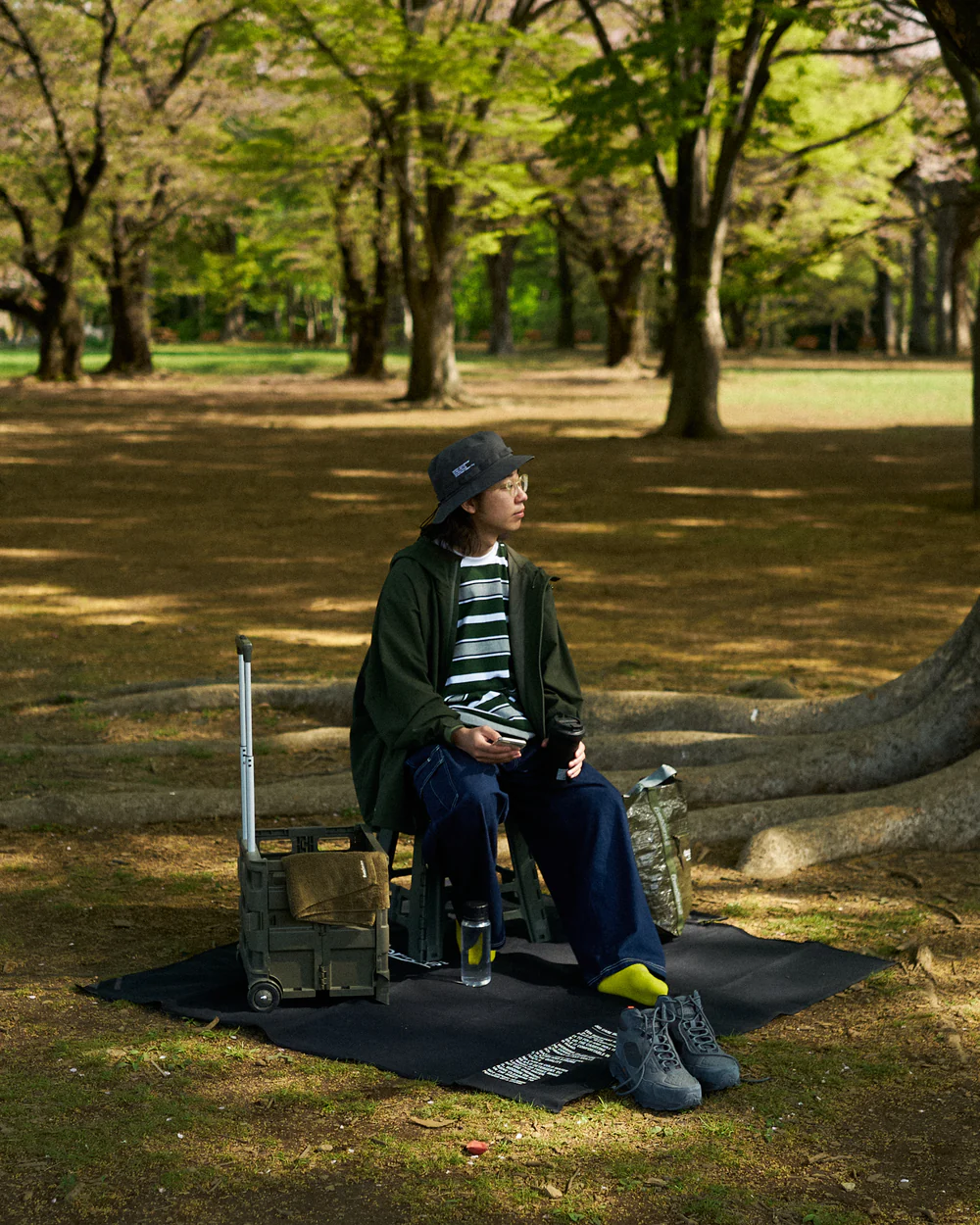 FreshService의 셋업 또한 흥미롭다. 겉보기엔 평범한 스트리트 웨어처럼 보이지만, 안쪽을 들여다보면 무수히 많은 포켓이 숨어 있다. 일상에서 손이 자주 가는 물건들을 모두 담아낼 수 있도록 마치 도구함처럼 설계된 옷이다.