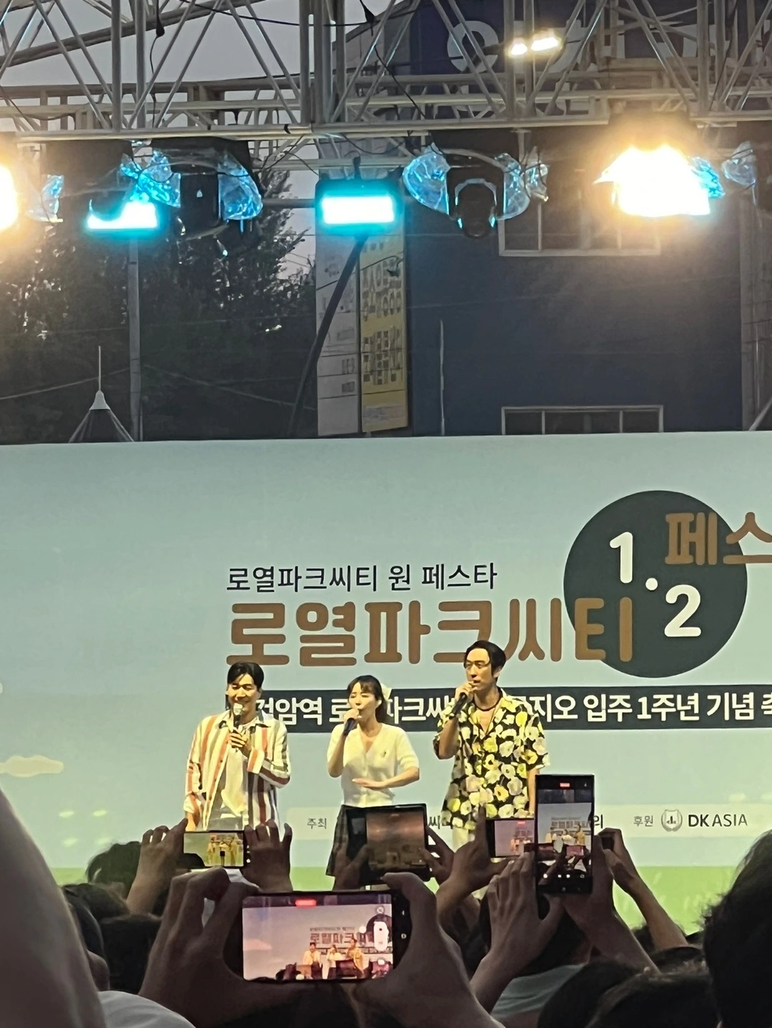 무대는 전광판이 없어서 사람들로 인해 보이지 않았지만 아이도 신나하고 신랑과 나도 맥주 한잔 할까 해서 캠핑의자를 갖고 나갔다. 후문을 막은 터라 다들 소풍마냥 돗자리에 캠핑의자에 맥주에 간식에 신나고 들뜬 모습이었다. 아이는 앞에 가서 보고 싶다고 했지만 글렀다. 사람이 너무 많아 라디오처럼 듣는 게 맞았다.