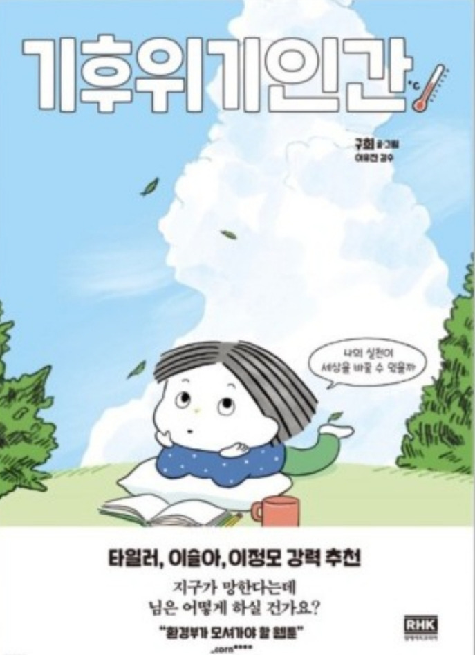 기후와 관련하여 이런 저런 책을 보다가 하늘색 책등이 맘에 들어 책을 집었는데 말랑한 그림체가 눈에 띄었다. <기후위기인간>이라는 만화책이었는데 도서관에서 만화책을 볼 수 있다니 놀라웠다. 만화책은 구매하거나 부천만화박물관에서 볼 수 있을 거라 생각했기에 이득이라는 생각이 들었다.