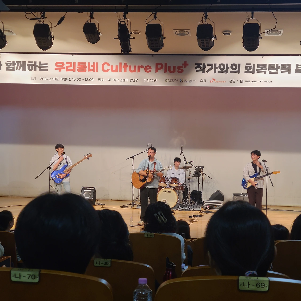 북콘서트 전에 진행된 밴드 프롬어스의 공연도 그랬다. 경기도에서 새벽부터 출발했다는 그들의 공연은 아침임에도 불구하고 매우 신나고 즐거웠다. 자작곡들도 공연했는데 마이크가 조금 아쉬웠지만 귀에 잘 들리고 좋은 노래들이었다. 직장인 밴드로 보였는데-일렉기타를 치시는 분이 연차를 내셨다고 했음- 다양한 대회에서 수상도 했다고 하니 대단해 보이기도 했다. 예전 일할 때 회사에 후원금을 주시던 직장인 밴드가 생각 나기도 하고 열정이 느껴지는 시간이어서 좋았다.
