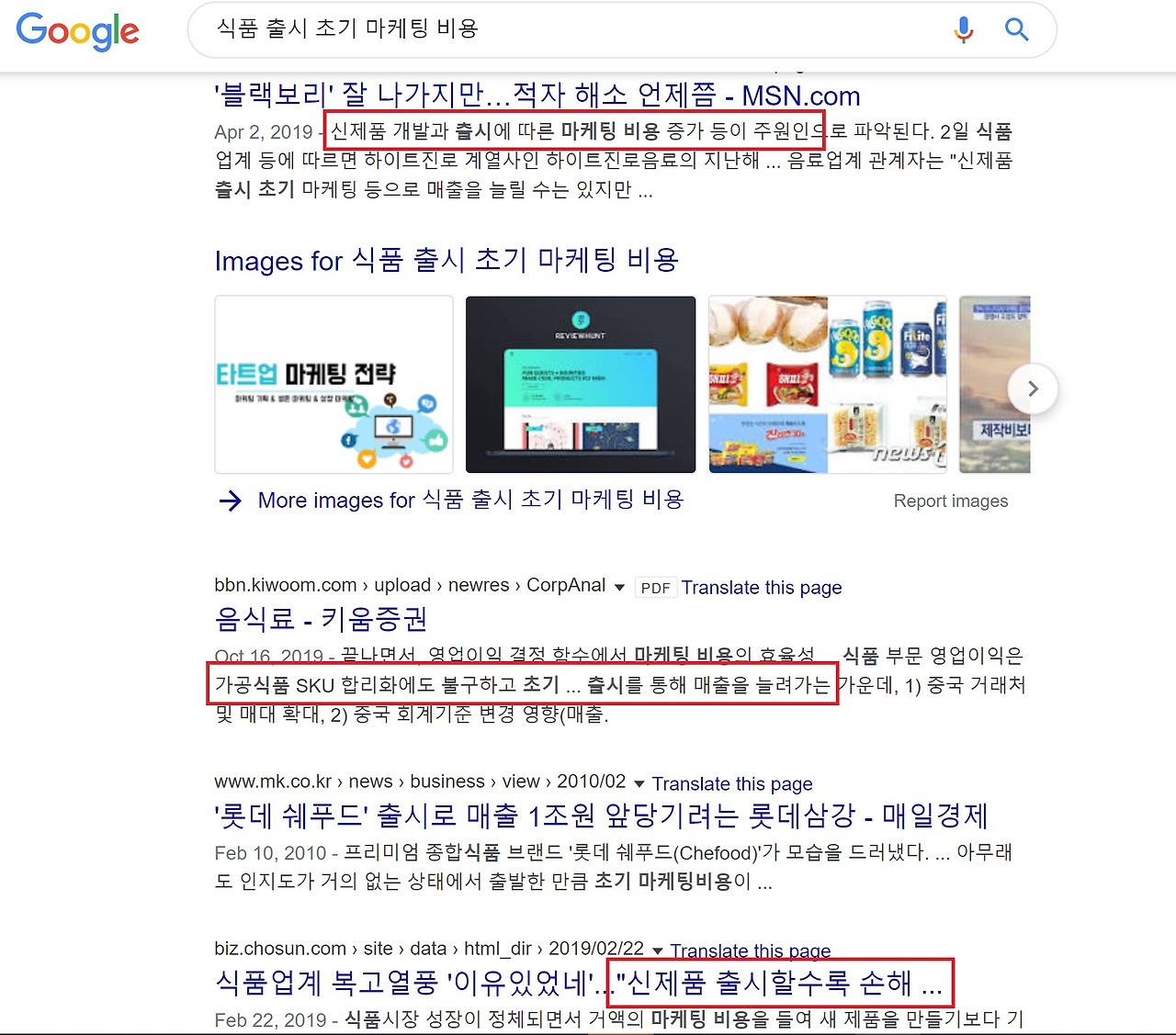 검색 포털이 아닌 콘텐츠 회사인 네이버 그만 쓰고 구글에서 식품 출시 초기 마케팅 비용을 검색해 봅니다. 보시다 시피 제품 개발 및 출시 초기 마케팅 비용에 대규모 투자가 이루어지는 건 식품 뿐만 아니라 다른 제품도 마찬가지입니다. 근데 양조장이 제일 잘 하는 게 모다? 네. (팔리지도 않을) 신제품 만드는 겁니다. 지인 몇 병 주려고 만드는 거 아니잖습니까?
