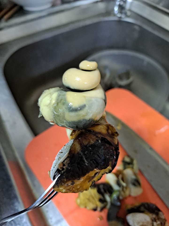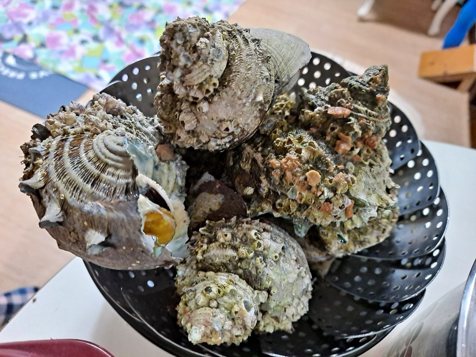 따스한 햇살을 받으며 해가 정면에서 서쪽 우면으로 넘어갈 때까지 이런저런 얘기를 나누며 광합성을 하고 나니 친구가 통영에서 주문한 뿔소라 택배가 도착했다고 어여 들어가잔다.