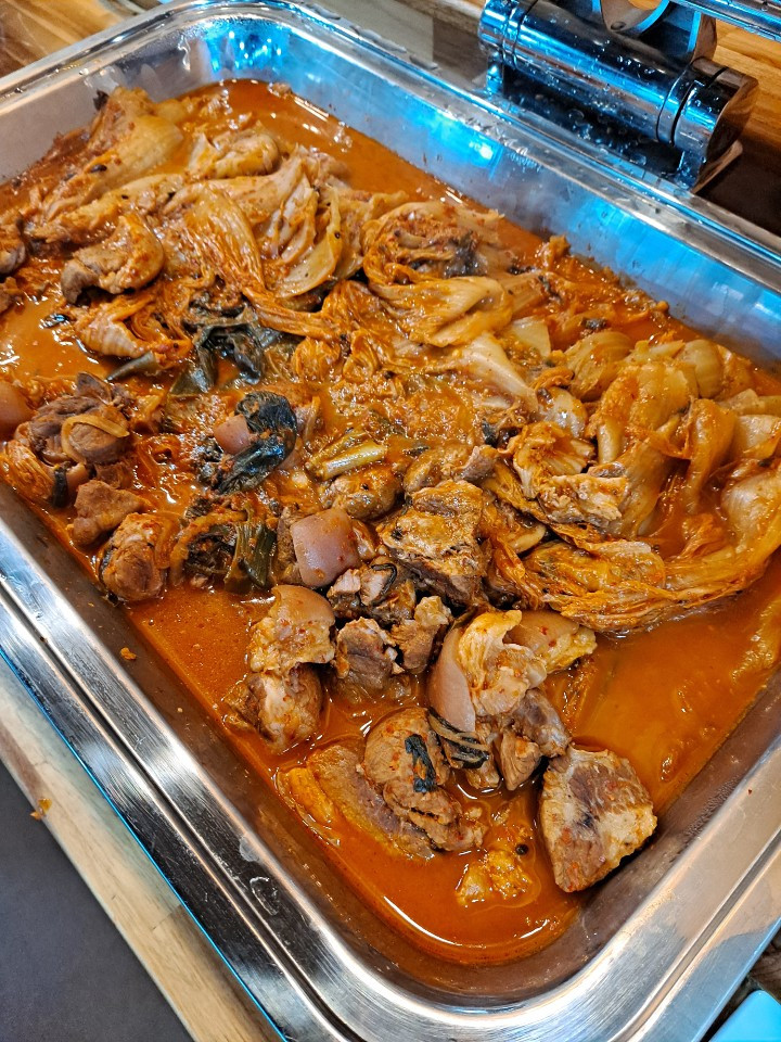 이곳은 할머니들의 일자리를 위해 마련된 곳인데 월-토 하루 2시간씩만 운영한다. 연산면사무소 옆에 위치한 곳으로 아래 사진의 맛깔난 한식들이 1인 8천원에 매일 10여 종 이상 세팅되고 자유롭게 부페식으로 먹고 갈 수 있다. 또한 로컬푸드를 쓰는 곳인데다 일하는 분들이 전부 지역 할머니들이라 그 옛날 우리 외할머니가 생각나는 곳이기도 했다.