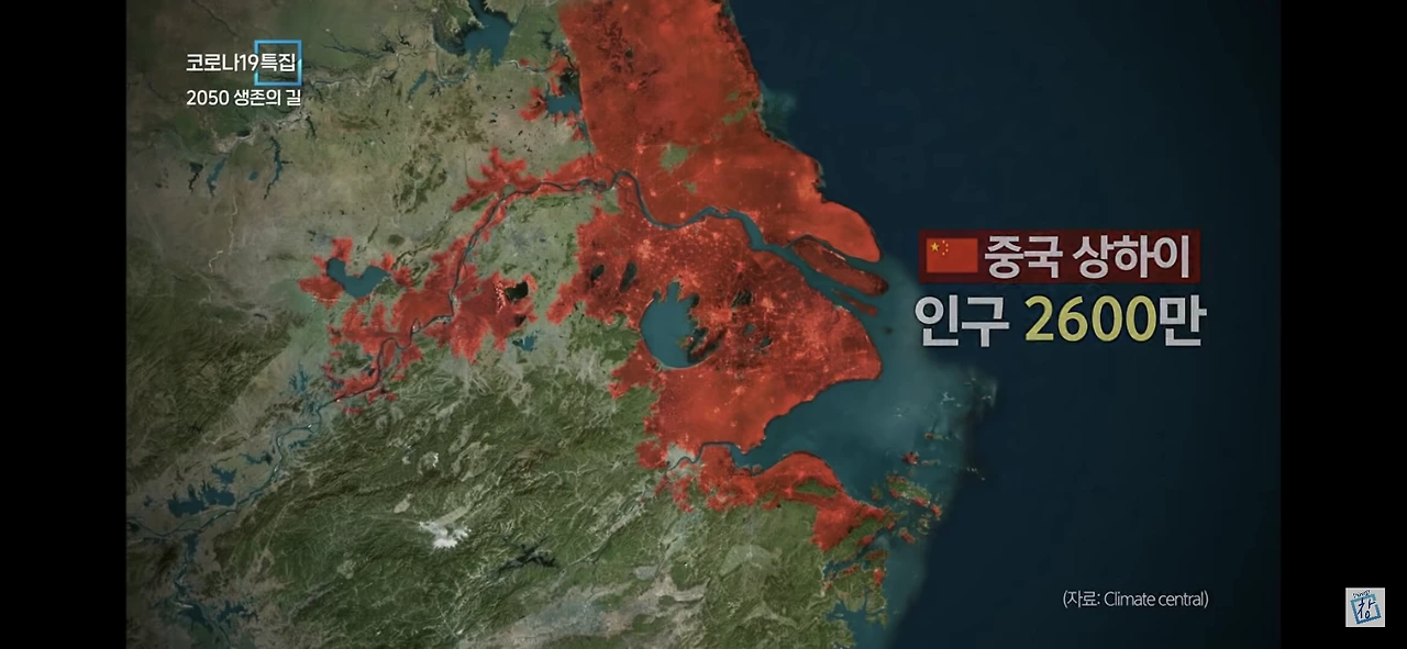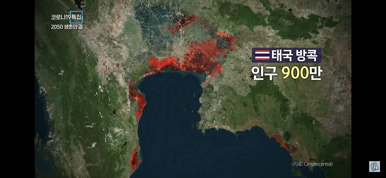 - 인구 2600만의 상하이 전역, 900만의 태국 방콕 전역, 1500만의 인도 캘커타 전역 및 부산과 인천을 포함한 한국 주요해안 도시가 바다에 잠기게 되며 태풍과 호우로 인천공항 및 인근 주요 인프라들이 침수될 것.