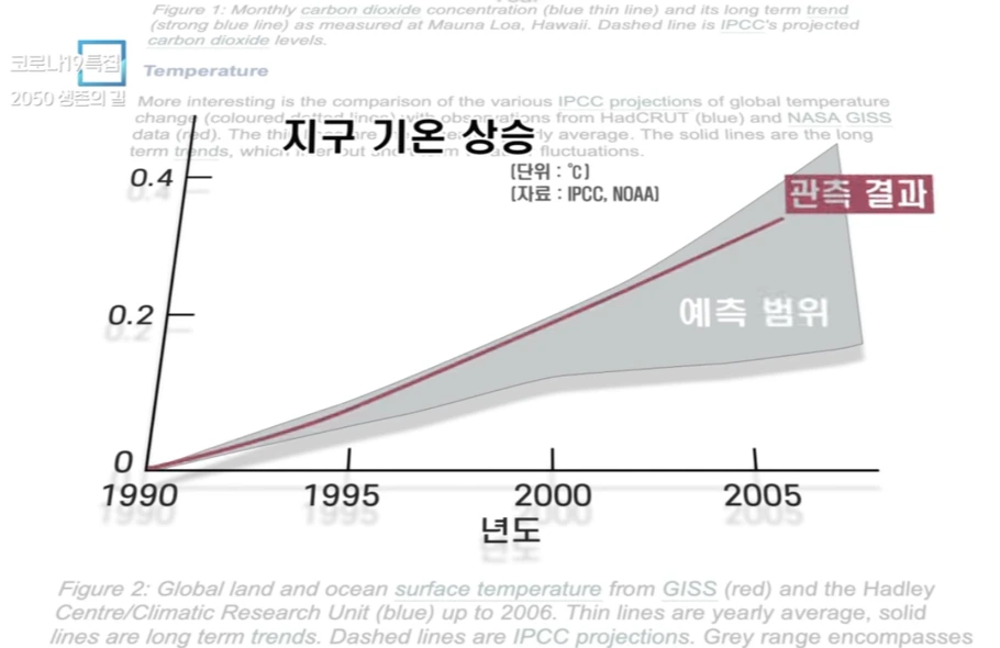 1990년 시작된 각국 과학자 수백명이 합의한 IPCC 예측보고서,