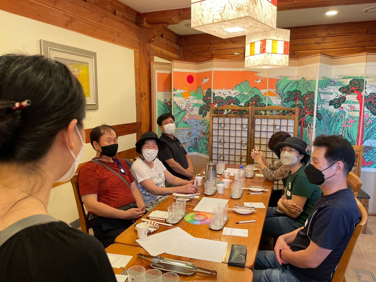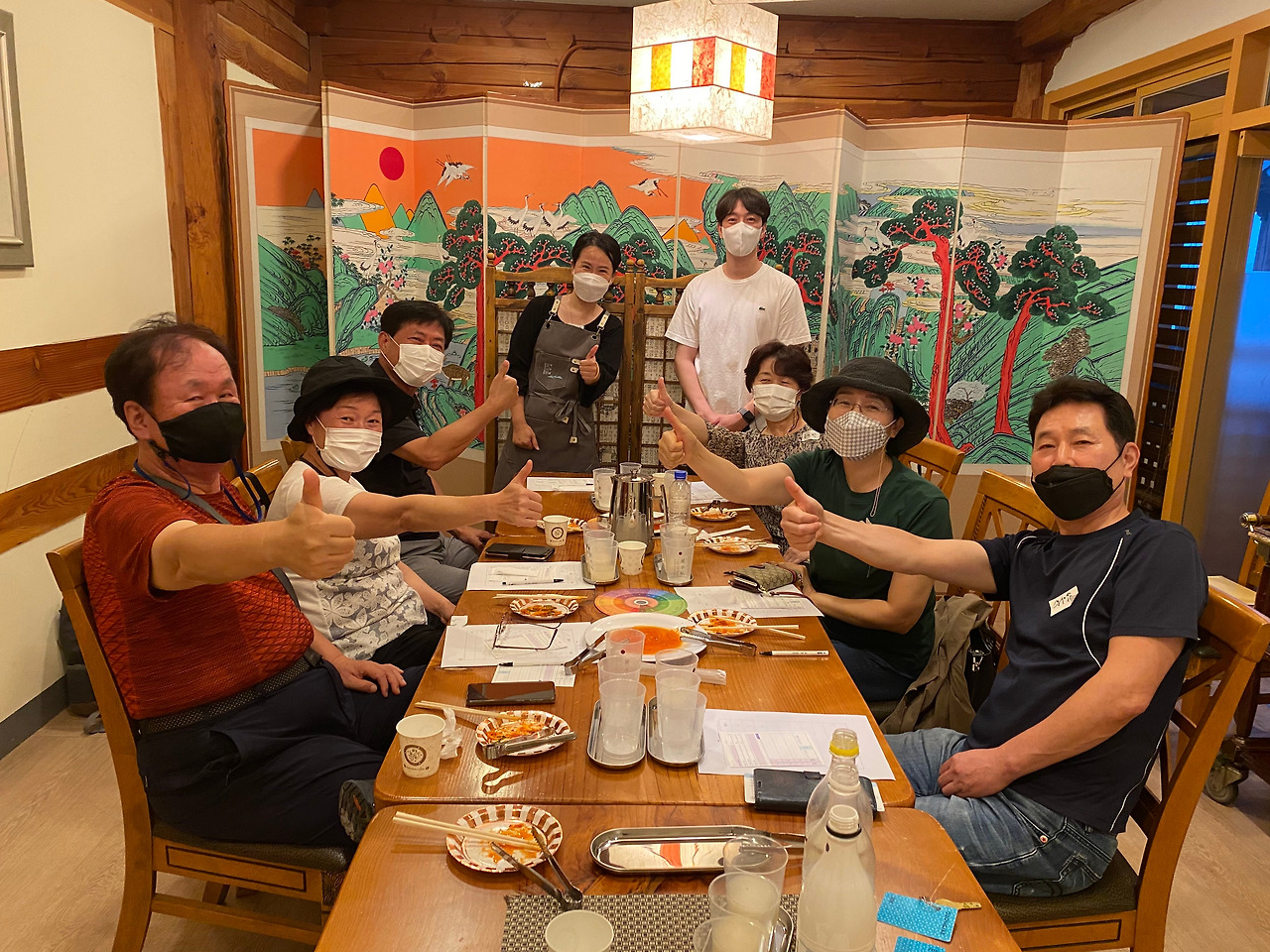 참가자들 연세는 대략 50대 중반 정도로 보였습니다. 전부 경상도 분들이라 저한테는 삼촌 뻘? 특이하게도 여성분들끼리 친구고 이 모임에 남편분들이 따라온 형국이라 재밌었네요. 함께 나이드는 친구들끼리 이렇게 놀러다니면 참 재밌죠. 대부분의 경상도분들이 그렇듯이 술을 폭음하듯 먹고 마시는 데만 익숙하지 이렇게 취향을 나누는 경험은 어색할텐데 역시나 소감나누기에도 나왔던 것처럼 "아, 우리가 술을 이렇게도 마실 수 있구나!"라는 체험은 신선한 충격이었을 것입니다.