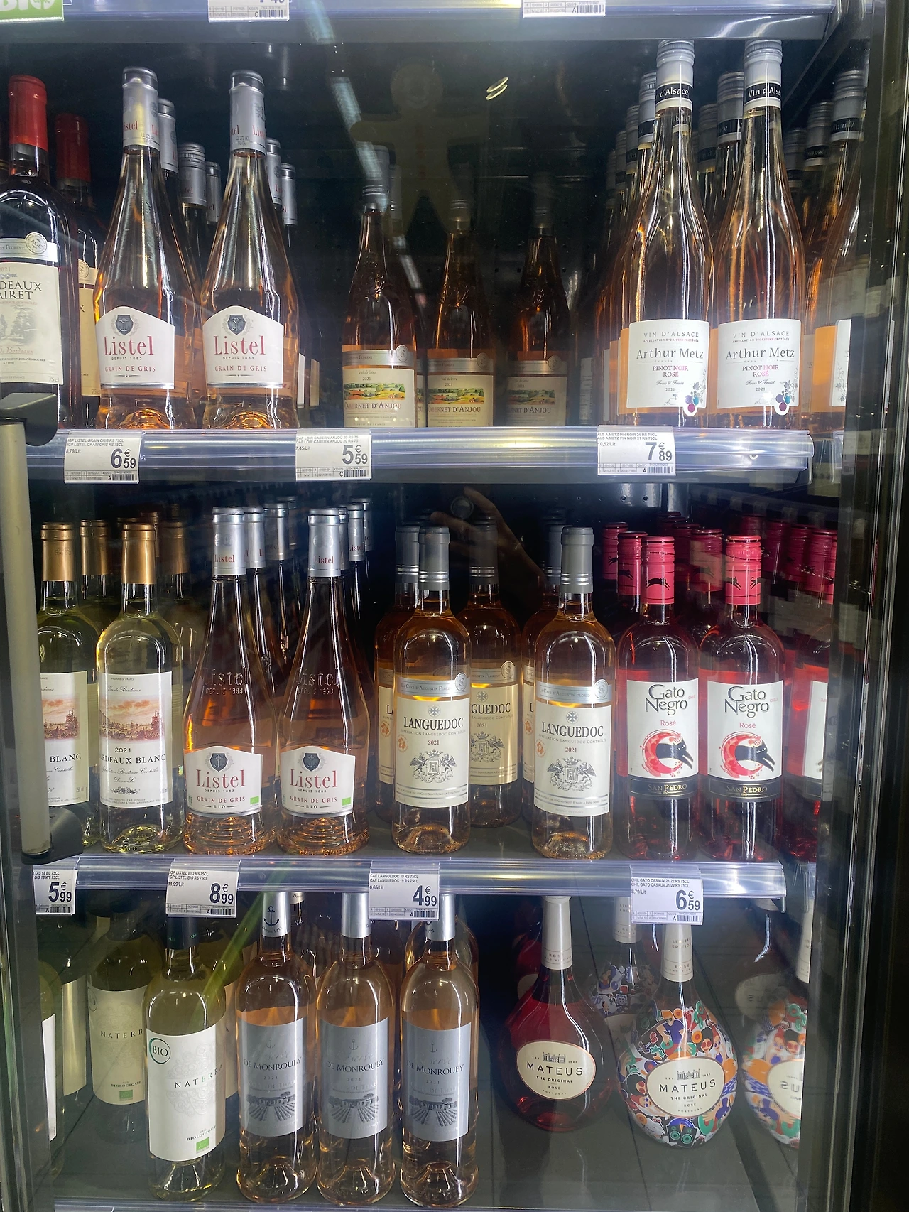넌빈티지, 로제, 스몰브랜드를 비롯해 브뤼에서 드미섹까지 종류별로 저렴하게는 10유로 대 부터 마실 수 있으며 특히 마트나 샵마다 세일하는 브랜드가 있으면 우리나라에서 10만원 정도 하는 샴페인도 1/3 가격에 마실 수 있습니다.