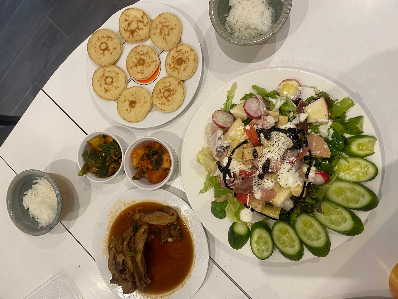 올리브유, 와인, 발사믹만 갖고도 이렇게 훌륭한 식탁이 차려집니다.