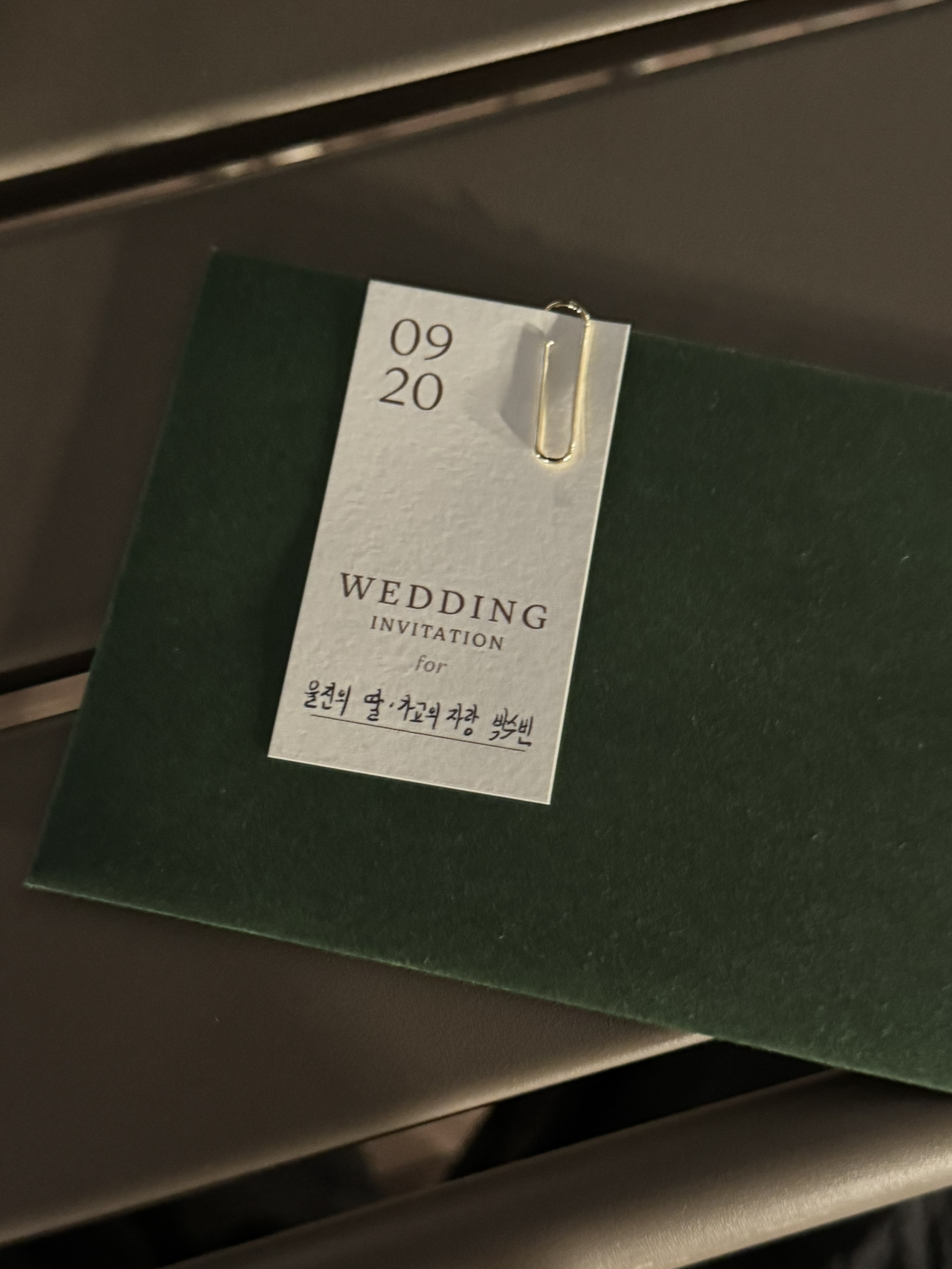 그러던 오늘 내 대학생활의 일부분을 감히 차지할 정도로 친했던 동기오빠를 오랜만에 만났다. 마치 10년 전 그 때의 장면장면을 어제 본 연애프로그램을 이야기하듯 신나게 추억하며 떠들어대다가 아참 청첩장 주려고 만났지. 받아든 청첩장 앞에는 ‘울진의 딸, 가교의 자랑 박수빈‘ 이라고 적혀있었다. 문득 지어진 씁쓸한 표정을 감추고 환하게 웃으며 축하해주었다. 나 누구의 딸, 누구의 자랑이라고 할만한가? 그렇게 살고있을까? 간당간당 들고만 있던 마음이 푹 내려앉았다.