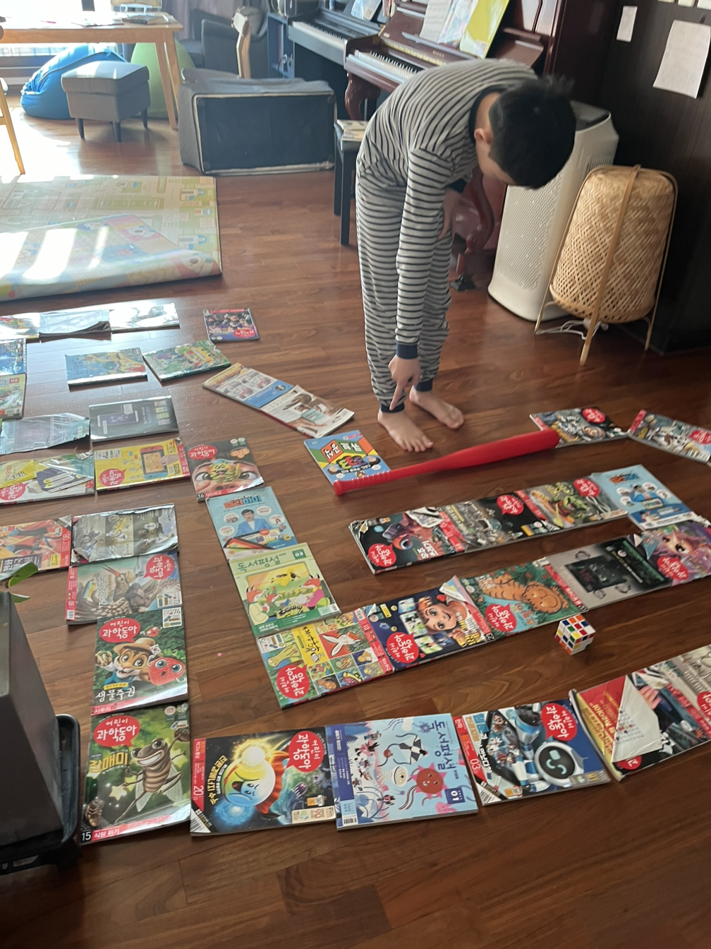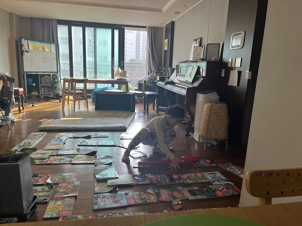책 이외에 어떤 것이 아이의 눈길을 사로잡는지 나는 보통 우리의 일상에서 관찰한다. 여전히 서로 밀착된 일상을 공유하며 지내고 있고, 그래서 서로의 취향을 가까이서 알게 된다. 불균형적인 사랑의 역학은 여기에도 적용되는지, 아이는 엄마의 취향에 대부분 관심이 없다. 반면 엄마는 아이의 취향에 시선을 멀리 둬보지만, 온 세포는 아이에게로 향해있는 것은 어쩔 도리가 없다.