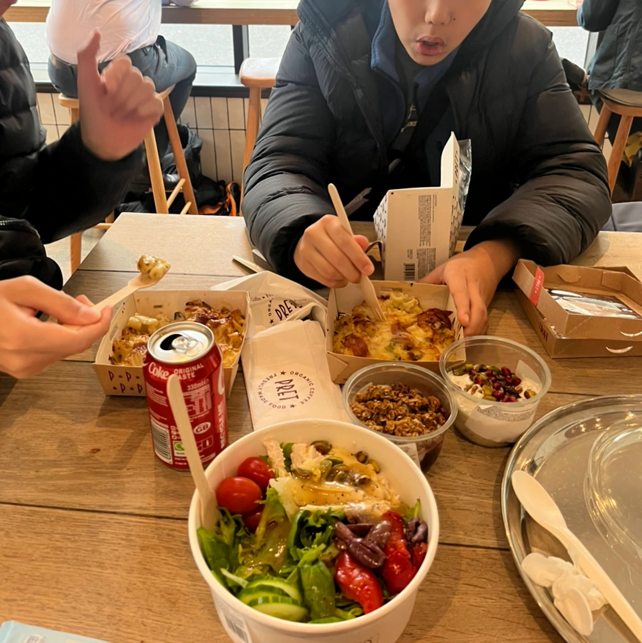 런던 내셔널 갤러리를 마지막으로 런던과 작별인사를 하고 나왔다. Pret-A-Manger 라는 오가닉 커피와 프레쉬한 샌드위치를 파는 곳에서 우리 가족은 한국인의 식성을 한껏 뽐내고 나왔다. 점원이 놀라며 "이걸 다? 와! 너네! 고마워"라고 할 정도였으니. 요거트가 2개, 파스타가 2개, 샌드위치가 1개, 치킨 샐러드가 1개 그리고 콜라. (이렇게 먹어도 아이는 살이 쏙 빠져왔다)