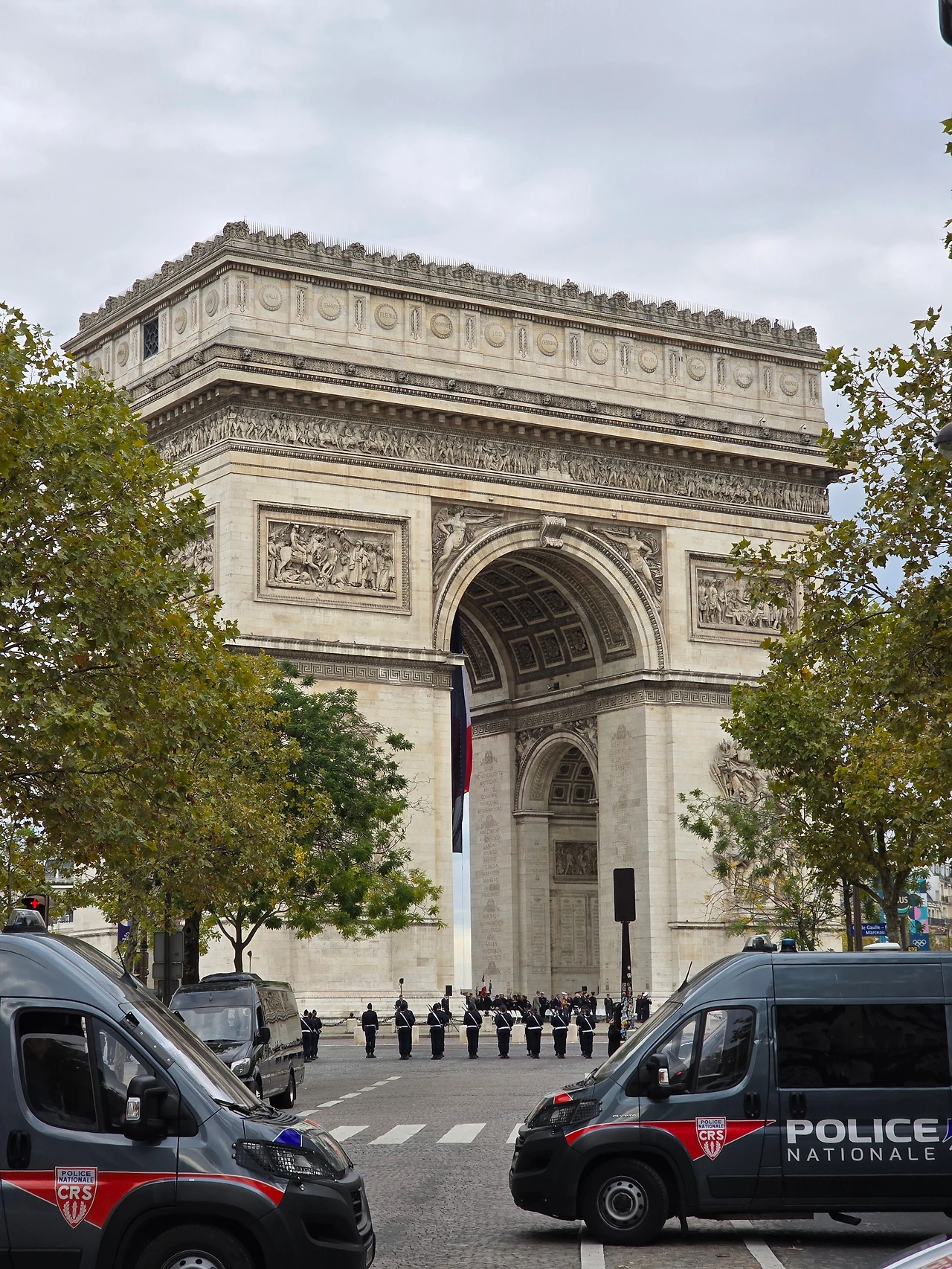 개선문이라도 슬쩍 보고 가자며 가이드는 우리를 안내했다. 개선문 주위로 장총을 든 파리 경찰들과 경찰차들이 보였다.