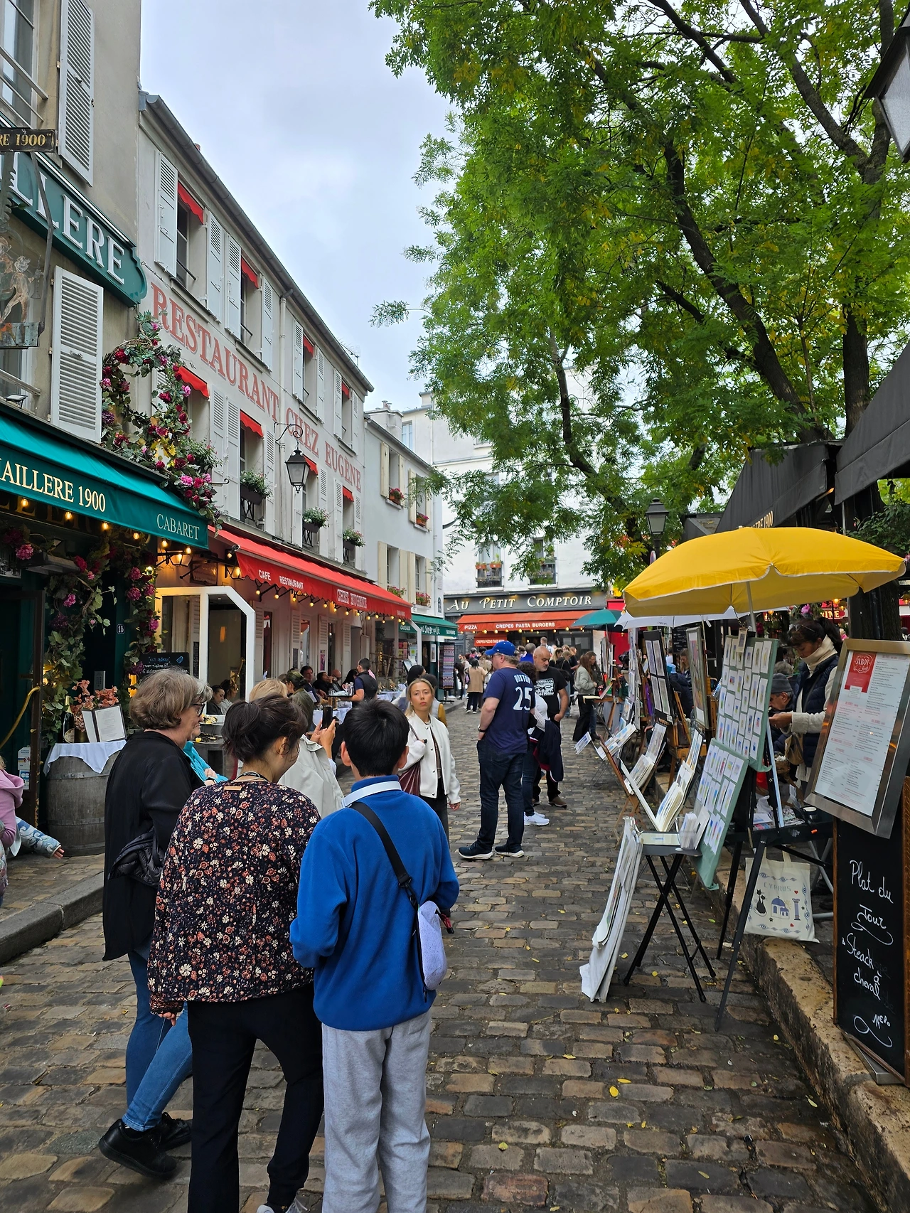 이곳에서 마지막 자유 시간이 주어졌다. 1시간가량 우리는 몽마르트르 곳곳을 거닐었다. 고흐, 피카소 등 19세기 가난한 화가들이 이곳에서 그림 작업을 했다고 한다. 지금도 곳곳이 예술의 향으로 가득했다. 무명 화가들이 거리에서 진을 치고 자신의 화풍을 뽐내고 있었다. 연한 물감으로 수책화로 풍경을 그려낸 화가도 있었고, 엽서용 작은 그림을 아주 섬세하게 그려낸 화가도 있었다. 인물의 특징을 잡아 빠른 속도로 그려낸 캐리커쳐도 있었고, 연필로 흑백의 소묘 그림을 그려내는 작가도 있었다.