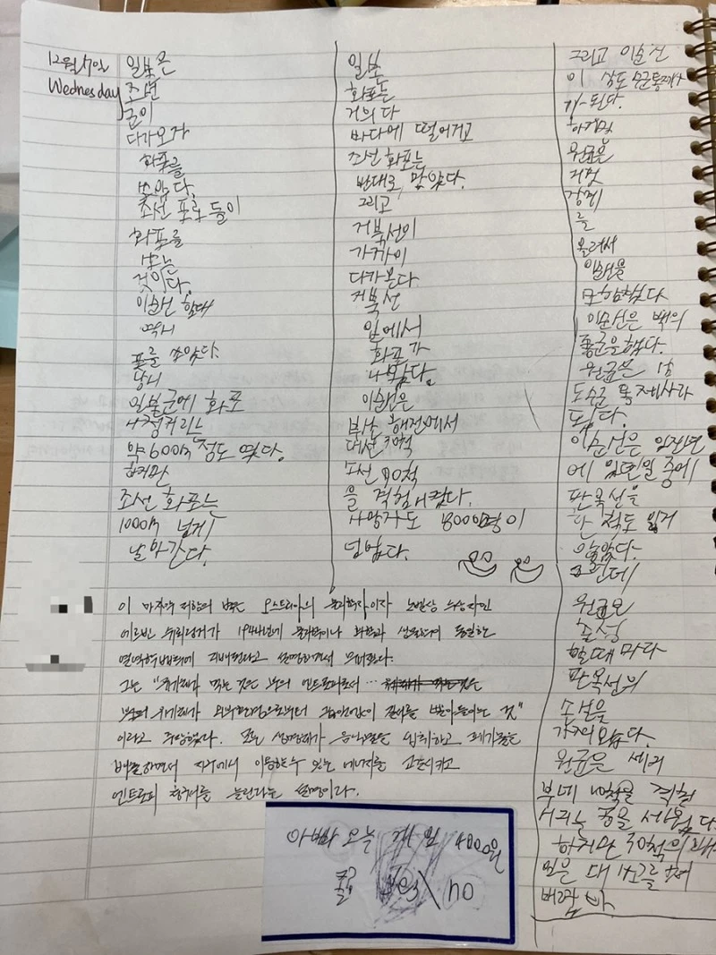 내가 필사의 매력, 김훈 작가님의 매력에 빠져있는 사이, 아이는 이야기를 지어내고 있었다. 매일 한 두 문장씩 이순신 장군의 이야기를 써 내려갔다. 필사를 하지 않아도, 한 두 문장에 끝을 맺어도 나는 토를 달지 않았다. 이 프로젝트를 함께 수행하는 것만으로도 감사했기에. 아이는 신기하게도 어느 때는 신나 하며 10 문장이 넘게 쓰기도 했고, 줄을 채우고 싶어 세로로 문장을 써 내려가기도 했다.