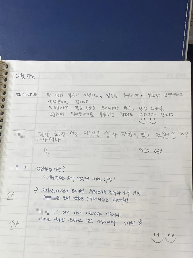 작년 2022년 10월 7일로 기억한다. 우리 가족은 소위 ‘필사 프로젝트’를 강행한다. 당시 3학년인 아이가 맞춤법이 부족해 이를 해결할 방법을 고심하다 생각해 낸 방법. 가족이 함께 각자 원하는 책을 골라 매일 원하는 만큼 필사를 하기로 했다. 바쁜 아빠도 출근 전에 몇 줄 남기고 가는 정성을 보였고, 나는 김훈 작가님의 ’ 칼의 노래‘를 필사했다. 아이를 위한 가족 프로젝트였지만, 필사하며 나는 김훈 작가님의 문체에 흠뻑 빠져버렸다. 문장 하나하나에서 강건함과 울림이 느껴졌다.