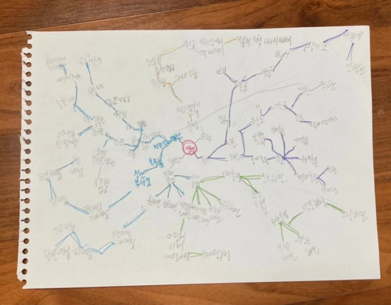 "잘 알고 있는 걸 그리면 가지들이 확장이 좀 잘 되지 않을까? 엄마는 그려보니 가지 확장이 잘 안 되더라.. 뭘 알아야 확장을 하지.. 아! 아들, 이순신장군에 대한 거 어때? 아는 게 많을수록 쓸 거리가 많잖아."