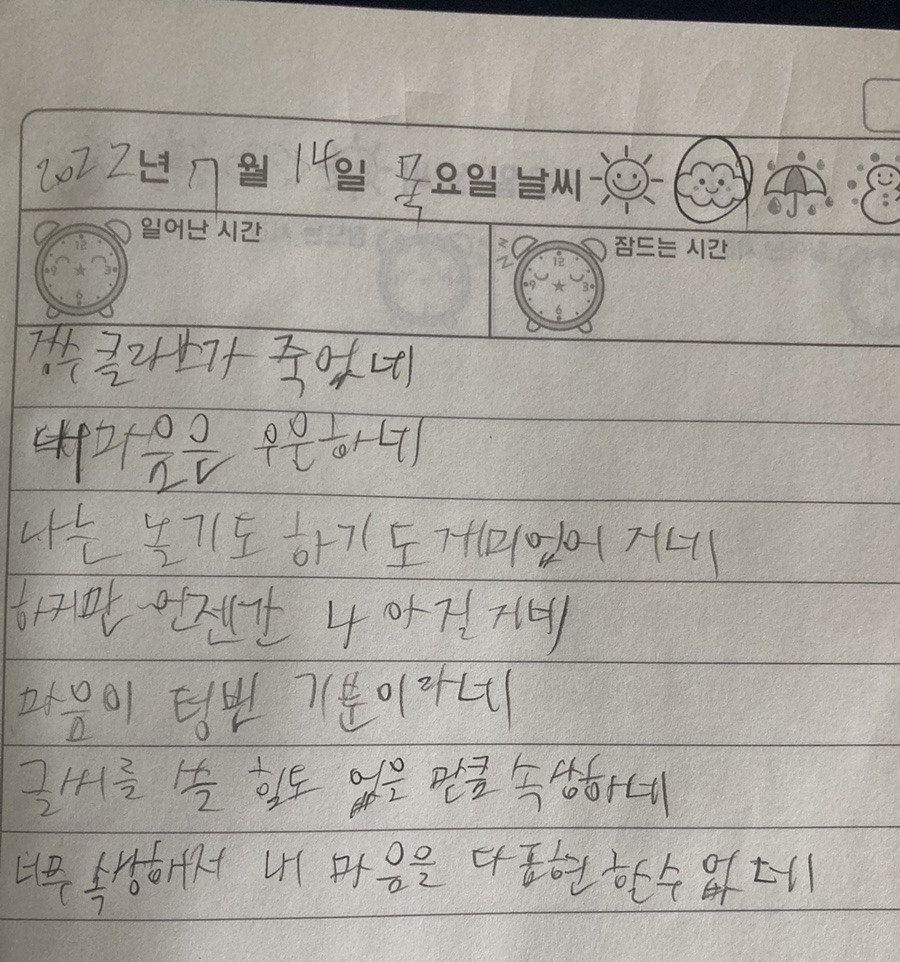 "엄마, 나 동시 썼어.. 근데 진짜 쓰고 나니까 좀 나은 것 같아.. “